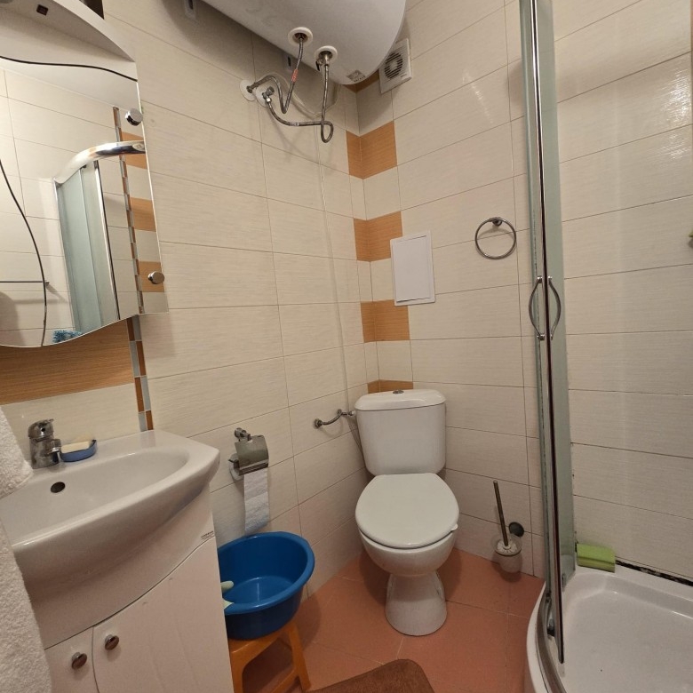 KC Properties is pleased to offer you this 1 bedroom apartment in a first class complex Emerald Paradise in Sunny Beach. The apartment is situated on the 2nd floor and has an area of 60 sq.m. with the following layout: living room with kitchen, 1 bedroom, bathroom with toilet and terrace. The apartment is completely finished and furnished, ready to live in or to rent out. The apartment is equipped with living room sofa furniture, TV, bed linens, kitchen is equipped with all necessary appliances / microwave oven, refrigerator, hood, etc. /. The complex is situated in the center of the resort, near Kuban Hotel, Disco club “Mania”, Djanni Restaurant, Aqua Park of Sunny Beach / the biggest in Bulgaria / as well as many other hotels, restaurants, bars and entertainment places. The central beach of Sunny Beach is only 500 m away. On site facilities and services: Swimming pool for adults and children Panoramic roof terrace with two Jacuzzis Barbecue Kids Corner Two panoramic elevators Parking Porter Bar Restaurant – open 4 seasons Annual maintenance fee – 780 EUR/year