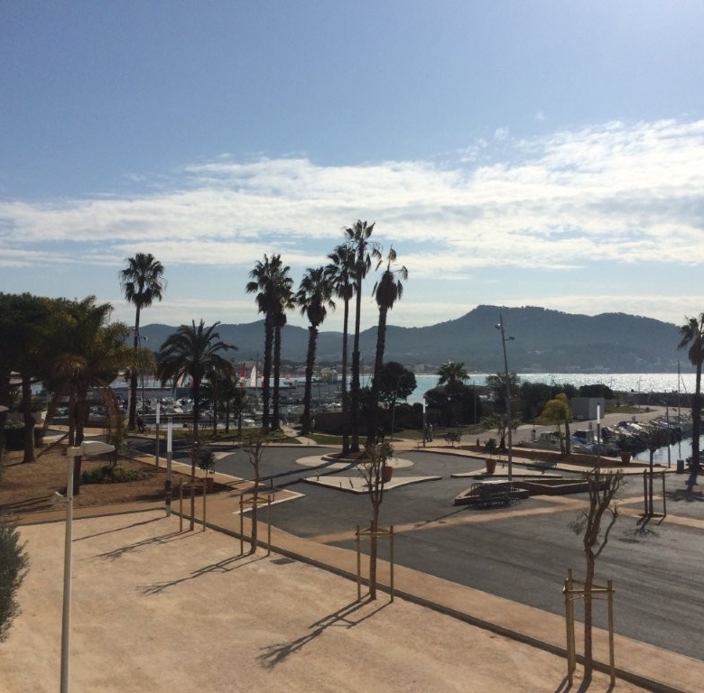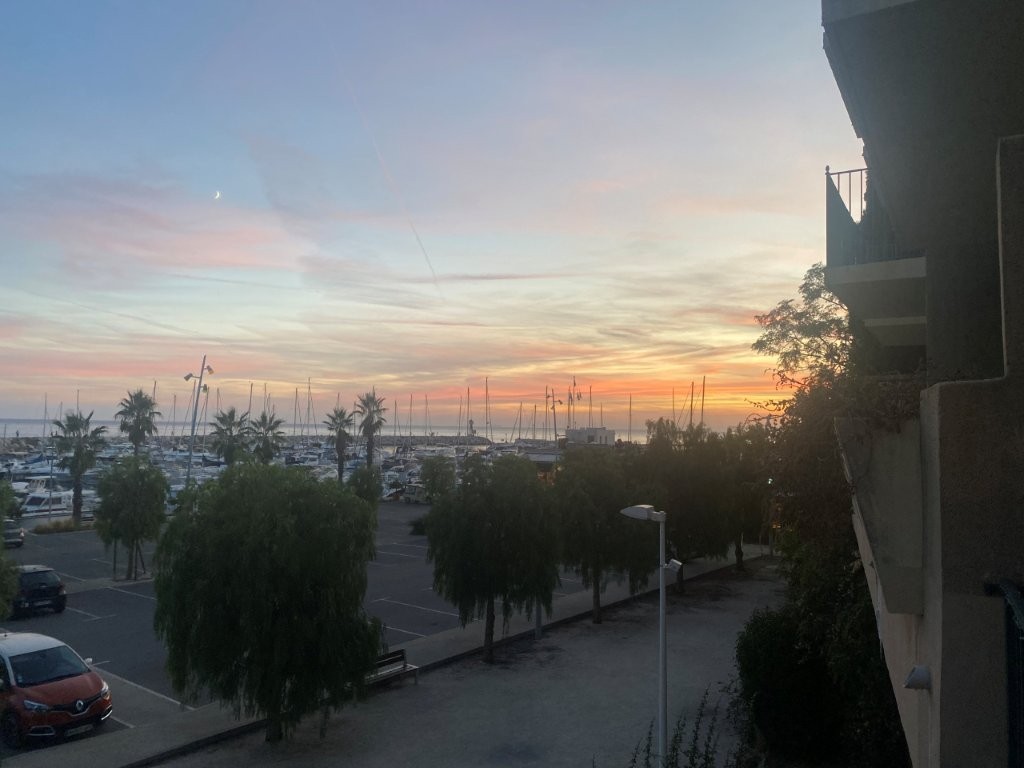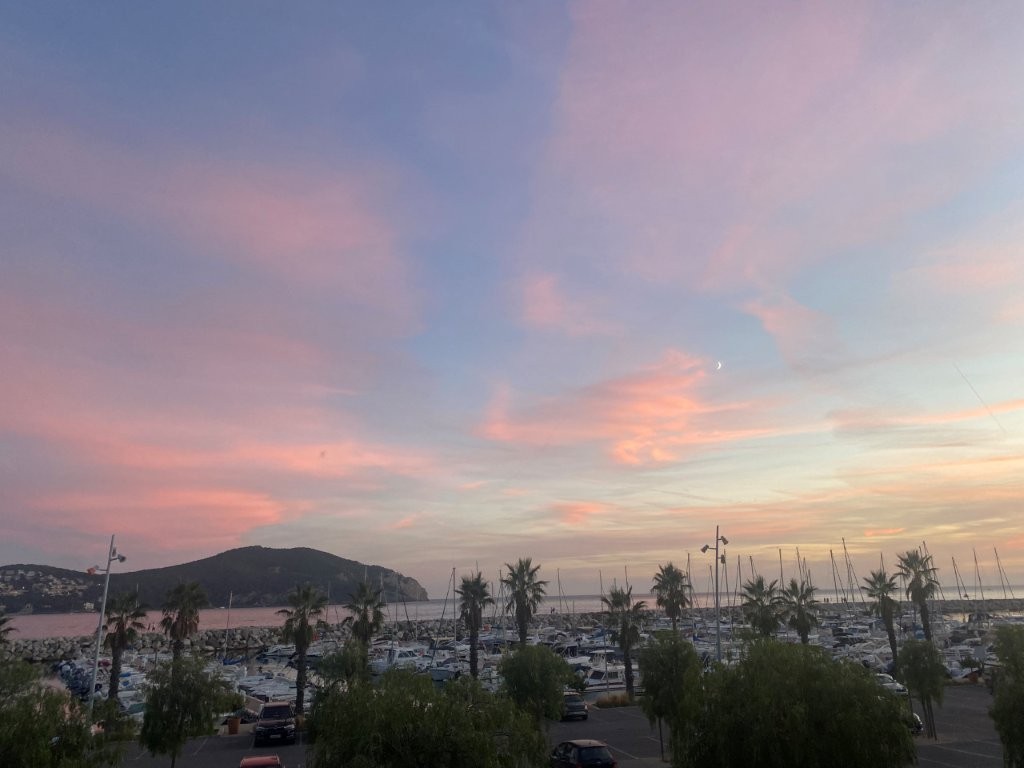 A tranquil bedroom, complete with a dedicated dressing area, offers a peaceful retreat, while a modern bathroom and separate toilet provide essential amenities. The true highlight of this property is the 10-square-meter terrace, which presents an awe-inspiring vista of the sea and the picturesque Madrague. This outdoor space is perfect for savoring the mesmerizing sunsets that paint the horizon in a kaleidoscope of colors. The residence itself is secured with a digi code, ensuring tranquility and serenity for its inhabitants. Its location, a mere 200 meters from the sandy beach and the vibrant port, allows for effortless enjoyment of the coastal lifestyle. Situated on Port Avenue, amidst a plethora of local shops and restaurants, the apartment affords the convenience of completing daily errands on foot. The city center, just 3.4 kilometers away, offers a wider array of amenities, local markets, and attractions.