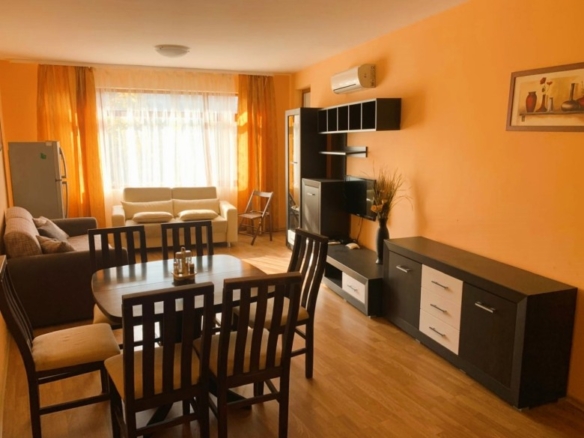 One bedroom apartment for sale in South-eastern Bulgaria nearby the village of Aheloy in short proximity to the most famous Black sea resort Sunny Beach. Vneyards SPA resort is nicely positioned on a hill with a beautiful sea panorama in the town of Kablesхkovo. The Black Sea is 2 km away and the Burgas Airport – 15 km / 15 min drive. The apartment has total living area of 72 sq.m. and it is situated on the 2nd floor. It comprises: very spacious living-room with a kitchen area, 1 bedroom, bathroom with a WC and a balcony with access from both rooms. The property is offered fully furnished and ready to use. Annual maintenance fee – 14 EUR/sq.m. The property is part of a holiday complex beautifully situated among the rich green pastures with beautiful panoramic views of the sea. All facilities are completed in a unique architectural style of the Bulgarian Revival architecture – red roof tiles, wood paneling, stone cladding. The complex has a good location, away from the noisy urban environment and at the same time just minutes away from the big cities. Closest destinations: Burgas airport – 14 km, Sunny beach resort- 10 km, Nessebar historical town – 10 km, Pomorie town (sea and spa resort)-10km, .Burgas city – 20 km. The nearest beach is just 2 km away. About Vineyards Spa Resort: It is nestled in a quiet, charming place, situated on the rolling hills in the valley of the river Aheloy, with incredible panoramic views of the sea. On its territory are perfectly combined 222 apartments, 34 villas, 4-star hotel with lush greenery. – 2 outdoor swimming-pool; – indoor heated pool; – SPA area; – restaurant; – pool-bar; – food shop; – beauty studio; – parking; – management office; – security