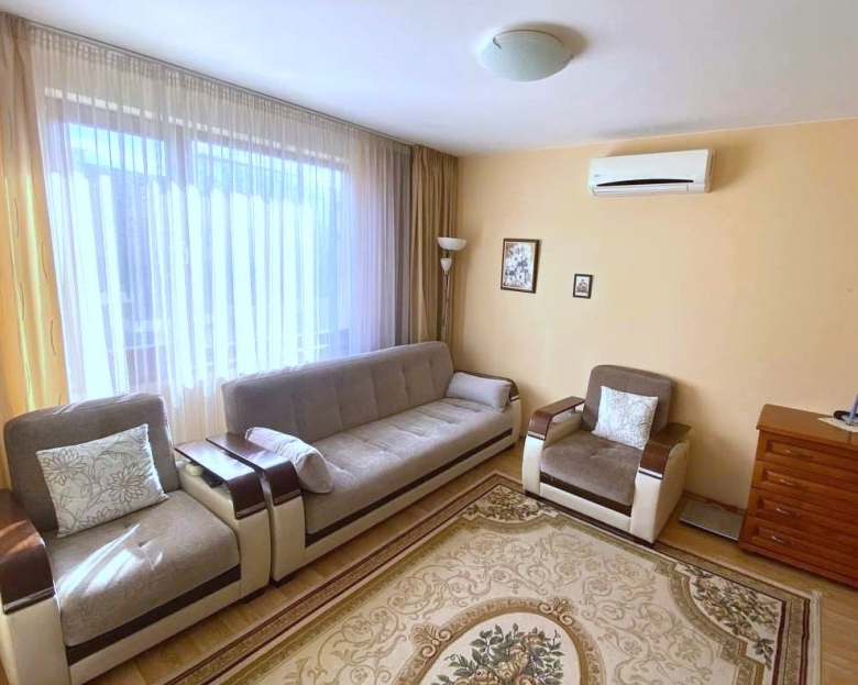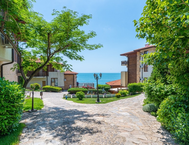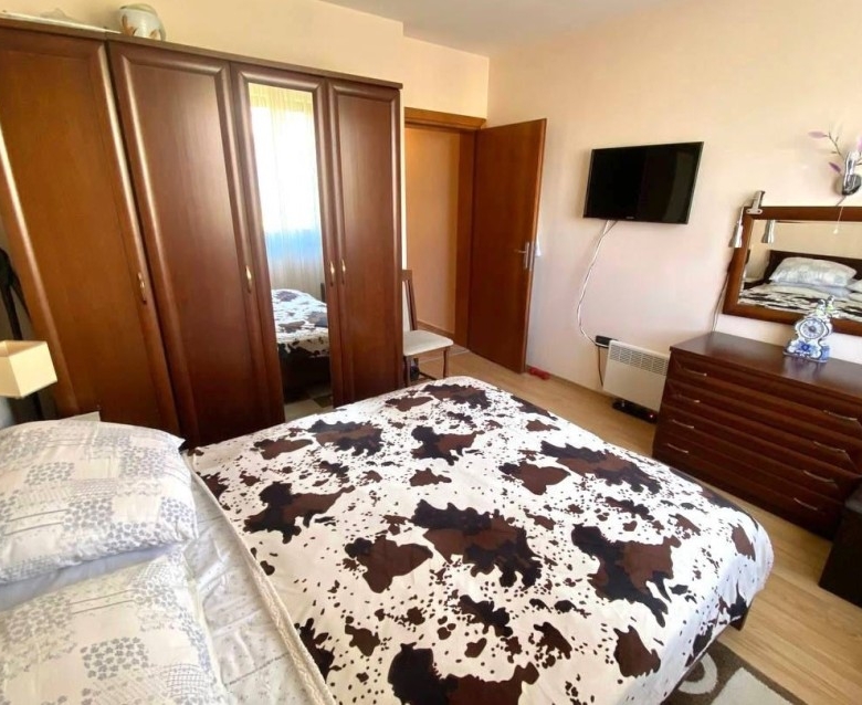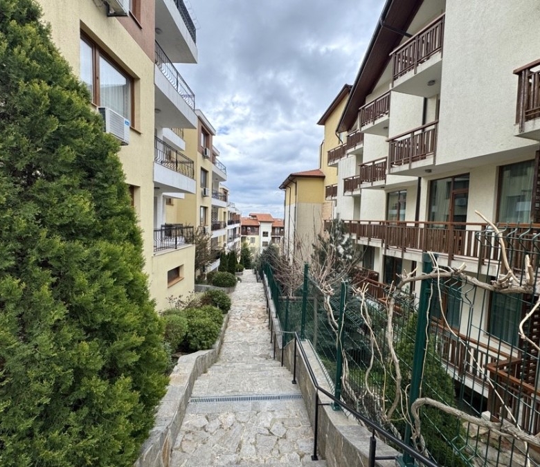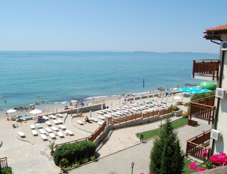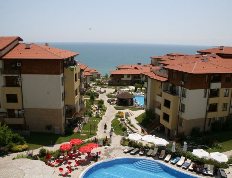 1 BED garden view apartment, 81 sq.m., in Garden of Eden, St. Vlas KC Properties is pleased to offer this beach front apartment situated in exclusive 5***** complex Garden of Eden in St. Vlas resort. The complex has seafront location (50 m) with its own private beach and spreads over a huge territory with green areas, restaurants, bars, spa center, swimming pools. The property features living area of 81 sq.m. and is situated on the 3rd floor. It is offered completely furnished and ready to use. There is an air-conditioner and fully equipped bathroom. Apartment comprises of: kitchen with lounge; one bedroom, bathroom and toilet and a big terrace with lovely panoramic views towards the gardens of the complex. The annual maintenance fee is 1355 EUR This exclusive seafront complex with five-star hotel and luxury apartments, has its own south-facing beach and pier looking across the beautiful blue waters of the Black Sea to Nessebar. The complex has seven outdoor swimming pools and water cascades, set in landscaped gardens; as well as three restaurants, tennis courts, indoor swimming pool, fitness and spa centre. Additionally The Garden of Eden complex has four pool bars, night bar, 24 hour room service, currency exchange, medical center, beauty salon, and a variety of shops, including a supermarket, to ensure your pleasant and peaceful stay at the picturesque Black sea coast. And more: * 24 hour reception * Internet club * Cars for rent * Underground parking lot * Mini Club * Laundry, dry cleaning, ironing * 24-hour security service * Organized and individual tours to various places in Bulgaria and the neighboring countries * Wi-Fi. The complex is set just minutes from the center of Sveti Vlas and within easy reach of Bourgas Airport. Near the property there is a bus stop. Excellent opportunity for renting out.