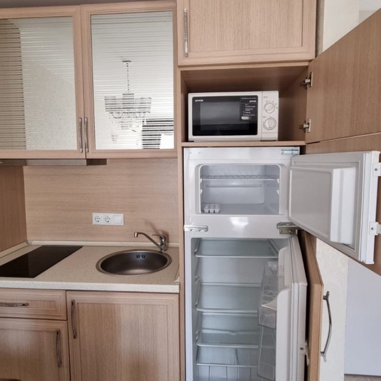 We are pleased to offer you this beautiful 1 BED apartment, part of recently built Harmony Suites Grand Resort (2020) in Sunny beach. The apartment is situated on the ground floor and has a total living area of 48 sq.m., comprising of: – open-plan kitchen with living-room; – one bedroom; – bathroom/WC; – terrace Annual maintenance fee – 20.4 EUR/sq.m. Harmony Suites 11-12 Grand Resort is a large-scale project consisting of 5 buildings located around a park in Sunny Beach, Bulgaria. The magnificent and cozy complex is located in a picturesque corner, near the park and all the necessary infrastructure – this place is attractive and comfortable for living all year round and recreation. The big advantage of the complex is the park, on the territory of which there is an outdoor summer fitness, gazebos for a quiet and comfortable stay and a playground! Harmony Suites 11-12 Grand Resort – a green oasis for permanent living by the sea! The Harmony Suite-11 and Harmony Suite-12 complexes are the first stage of construction of the Harmony Suites Grand Resort project. 100% security is guaranteed, because the complex is closed, there is year-round security 24 hours a day and video surveillance. All apartments have a comfortable layout with access to beautiful round balconies. The complex has comfortable elevators. During the construction and decoration of apartments, materials of high European quality were used! The owners of apartments in the Harmony Suites 11-12 complexes enjoy all the services and amenities in the Harmony family complexes. The apartments are offered for sale with finishing works “turnkey” floors – laminated parquet of the highest quality, walls and ceilings – latex and wallpaper, lighting fixtures, wooden doors: MDF, fully equipped bathrooms, air conditioning. The complex for sale includes: studios, apartments with 1 and 2 bedrooms, as well as penthouses. The distance to the sea is only 650 meters. There is all the necessary urban infrastructure. Other large Bulgarian cities are located nearby: Burgas, Varna, St. Vlas, Nessebar. Complex infrastructure Huge green park with gazebos and walking paths; Club complex – the client has the right to use the services of all Harmony Suites complexes; Lobby / Reception; Restaurant-bar; A fitness center; Swimming pool for adults, 47 meters, with chlorine-free water filtration Heated childrens pool with chlorine-free water filtration Playgrounds Outdoor and indoor recreation areas with gazebos and hammocks Free Wi-Fi Internet; Russian TV; Intercoms; Fire fighting system; 24 hour security and video surveillance Spacious enclosed area for walking The complex offers furnishing and guaranteed rental options
