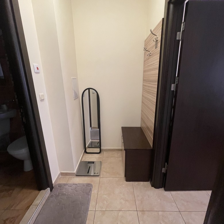 Apollon apartments have fantastic location – only 3 min walking distance to the sandy beach (popular Aurelia beach). The complexes are situated between Ravda and Nessebar, within short walking distance to various shops, restaurants and bars, bus stop, etc. attractions and amenities. The Aqua Park is 300 m away. There are 7 swimming-pools on dispose of the owners and their guests, 2 restaurants, SPA area, gym, sauna, security, parking and 3 children’s playgrounds. Annual maintenance fee – 10 EUR/sq.m. The apartment is situated on the ground floor and has a total living area of 65 sq.m., comprising of: – open -plan kitchen with lounge and bedroom area; – 1 bedroom; – bathroom/WC; – balcony with views to the surroundings. The price includes all furniture as shown on the photos.