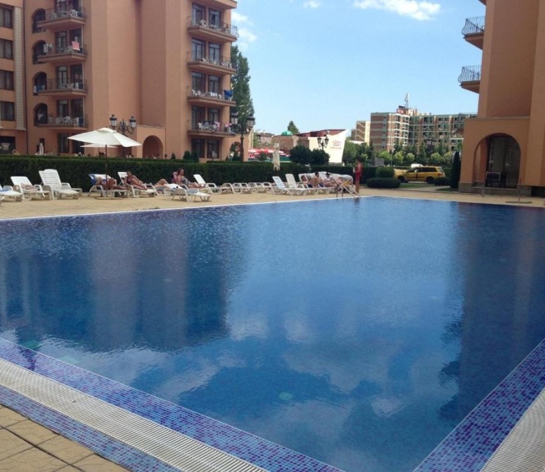 1 BED pool view apartment, 71 sq.m., in Palazzo, Sunny beach We offer to your attention spacious 1 bedroom apartment in the complex “Palazzo” in Sunny Beach. The apartment has an area of 76 square meters and is located on the ground floor of the complex. The apartment is fully furnished and equipped, ready to use, in excellent condition. The hotel “Palazzo” is situated in the south-western part of one of the largest and most popular on the southern Bulgarian Black Sea coast resorts – Sunny Beach, just 200 meters from the beach and the sea. “Palazzo” offers a completely finished “turnkey” and furnished two-bedroom apartments with a functional layout. “Palazzo” is unique also because it combines the luxury of a 4 star hotel, not far from the turquoise sea and golden beaches, with the silence and solitude. Features of the complex – 24Hour security – Outdoor swimming pool – Childrens Pool – Lobby Bar – Pool-bar – Massage salon – Play room with darts and billiards – Satellite TV – Wireless Internet connection – Parking – Pizzeria – Night Bar Administration and public service. The annual payment for the administration and public services – 12EUR/sq.m. Having bought the apartment owners pay a yearly fee for the maintenance of the complex, which includes: Providing round-clock security Service-campus Service-public parts of the building Service-pool.