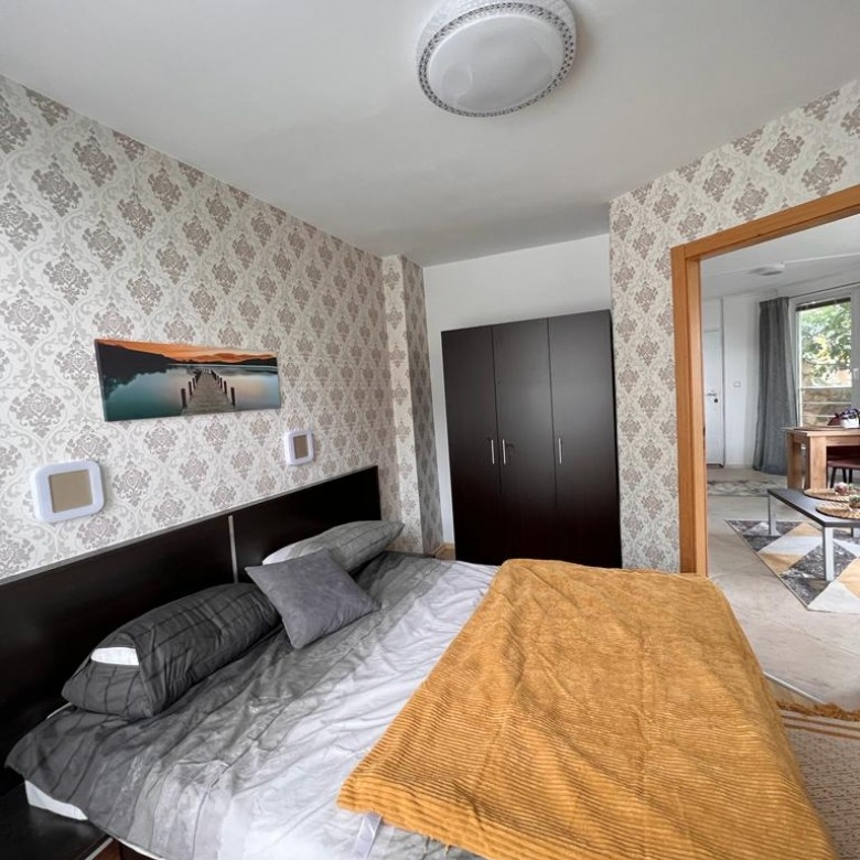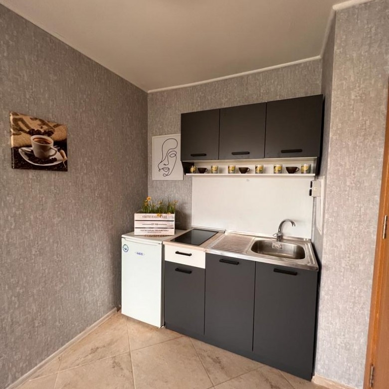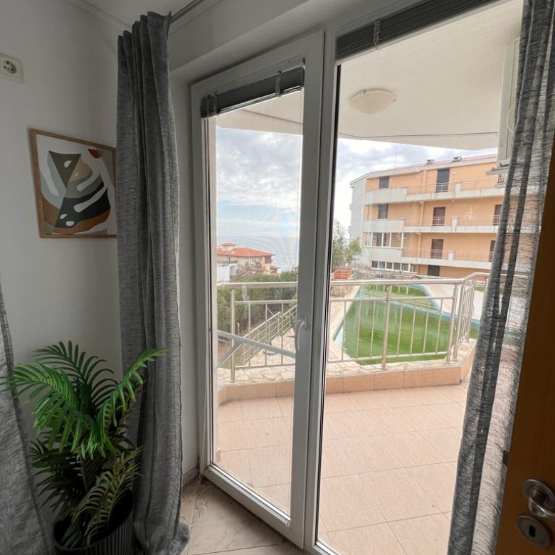 We offer for sale a one-bedroom apartment with a view of the sea and the pool in the “Galatea” complex, located in the southern part of the resort of Saint Vlas, only 150 meters from the sandy beach. The location is excellent – close to the sea and the beach, as well as to the famous yacht port “Marina Dinevi”, where you can enjoy a variety of restaurants, bars and clubs, summer attractions. The apartment is situated on the 2nd floor and has a total living area – 56 sq.m. It is bright and very functional, with the following layout – living room with dining area and separate kitchenette, bathroom with toilet, bedroom, terrace with a view of the sea and the pool. For sale ready for living, furnished and equipped with everything you need, in excellent condition. At the disposal of the owners and guests of the complex there is an outdoor swimming pool with a childrens section, landscaped areas, a restaurant, a bar, a gym, a relaxation and sunbathing area, a barbecue, round-the-clock security, maintenance, parking. Annual maintenance fee – 10 EUR/sq.m.