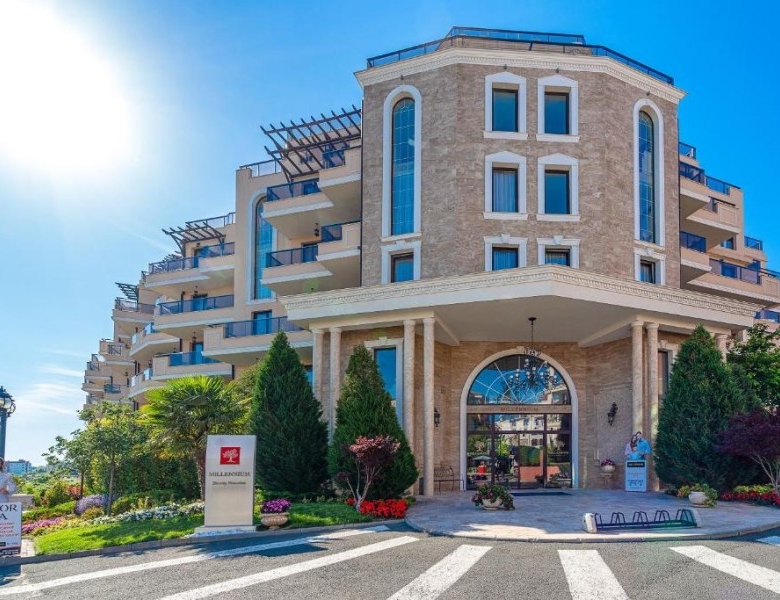 1 BED sea view apartment, 61 sq.m., in Millennium 2, Sveti Vlas, 150 m to the sea We are pleased to offer you this stylish 1 BED apartment, just 2 min walk to the sea. Total living area – 61 sq.m. Floor: 4th (with a lift) Balcony with sea views Modern one bedroom apartment – part of well-maintained residential complex Millennium 2. The apartment is perfectly equipped; there is a terrace with a panoramic view of the sea. The property is on the fourth floor of a building equipped with an elevator. The apartment is located in the resort town of Sveti Vlas, in the central part and next to the Marina Dinevi area, which is famous for its beautiful marina and full-fledged infrastructure of the resort city. On-site facilities: a large swimming pool, a beautiful garden with shaded recreation areas, a playground, parking for cars. Annual maintenance fee – 12 EUR/sq.m.
