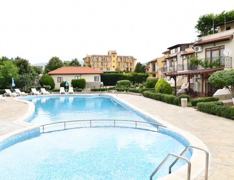 1 BED sea view apartment, 66 sq.m., in Sveti Nikolay, St. Vlas resort, excellent price We are pleased to offer you this 1 BED apartment with excellent location – on the first sea line in the coastal resort of St. Vlas, within easy reach of shops, restaurants, bars and public transport. The apartment is situated on the second floor and has a total living area – 66 sq.m. It consists of: – Entrance hallway; – Kitchen with living-room; – One bedroom; – Bathroom and toilet; – Balcony with views to the sea The apartment is offered with the furniture as shown on the photos. The property is part of a holiday complex – St. Nikolay, situated on the first sea line in St. Vlas resort. Distance to the center of the resort is 2 km. Nessebar old town is 20 min away. The apartments are situated in 2-storey houses set within a green territory with a swimming-pool. Distance to the sandy beach is 100 m. On site facilities: – Restaurant; – Cafe-bar; – Swimming-pool; – Children’s playground; – Big park Annual maintenance fee – 450 EUR/year