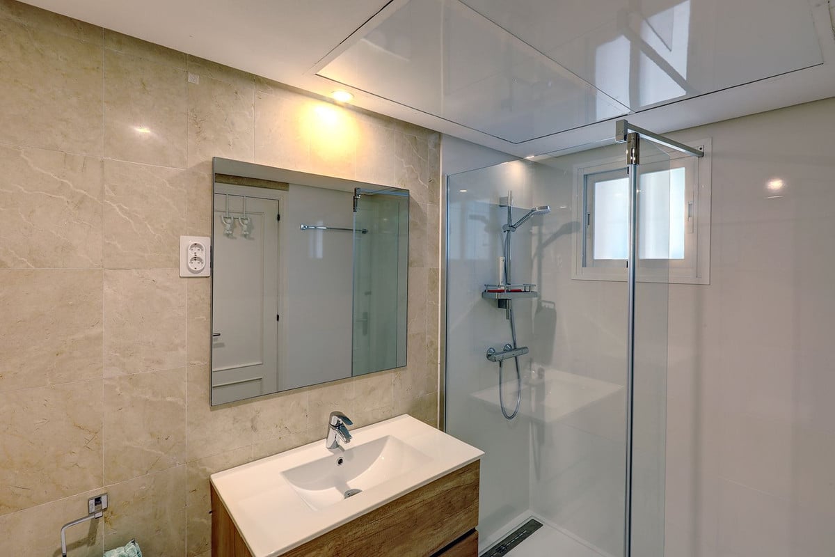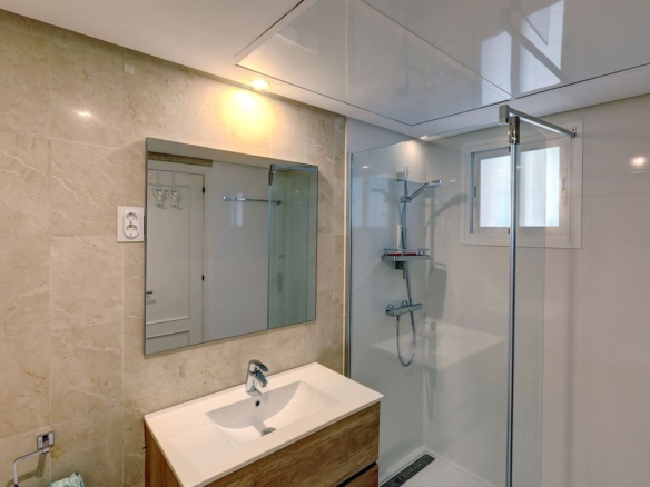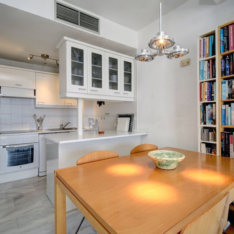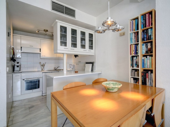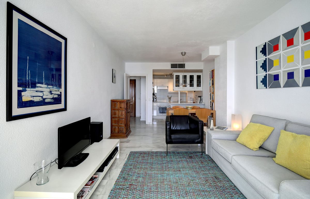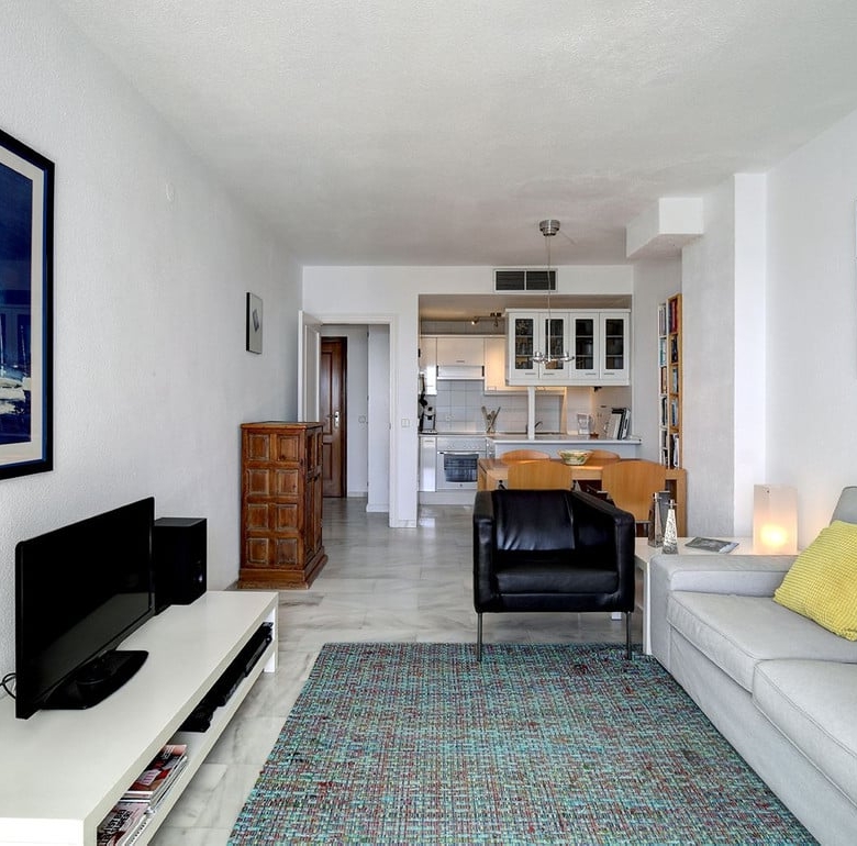 The Carrefour, a large supermarket is next door. At the bottom of the building, on the promenade are 3 bars and an excellent fish restaurant where you can enjoy a drink, a snack or meal in the sun until late in the afternoon. The distance to the centre of the village with its many restaurants, beach clubs, bars and cosy shops is 7-10 minutes’ walk. The marina can be reached via the promenade a 40-minute walk away.