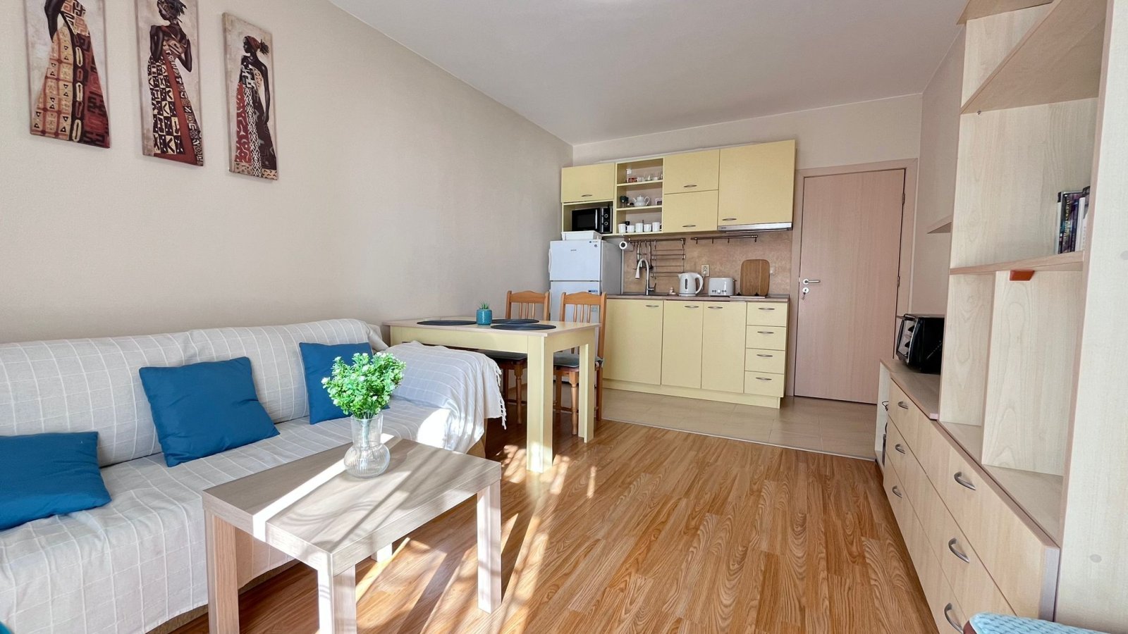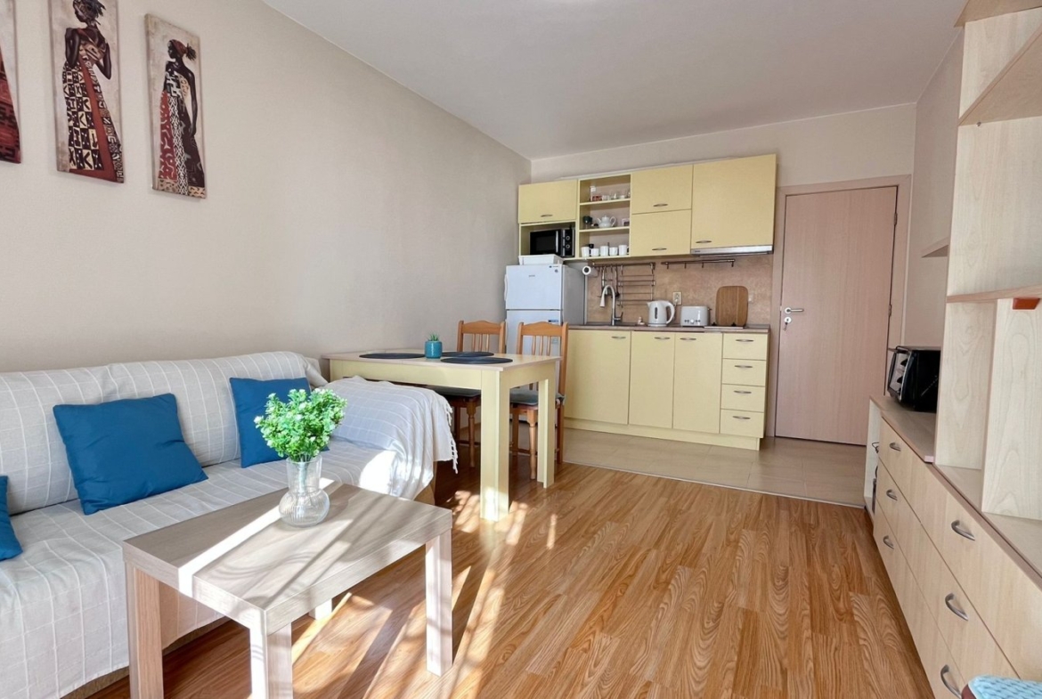 Imagine a place where the sea kisses the sky and every sunrise brings a promise of a new beginning. This two-room apartment on the 3rd floor of one of the most beautiful complexes in Ravda is the home of your dreams, just a step away from the beautiful beach.