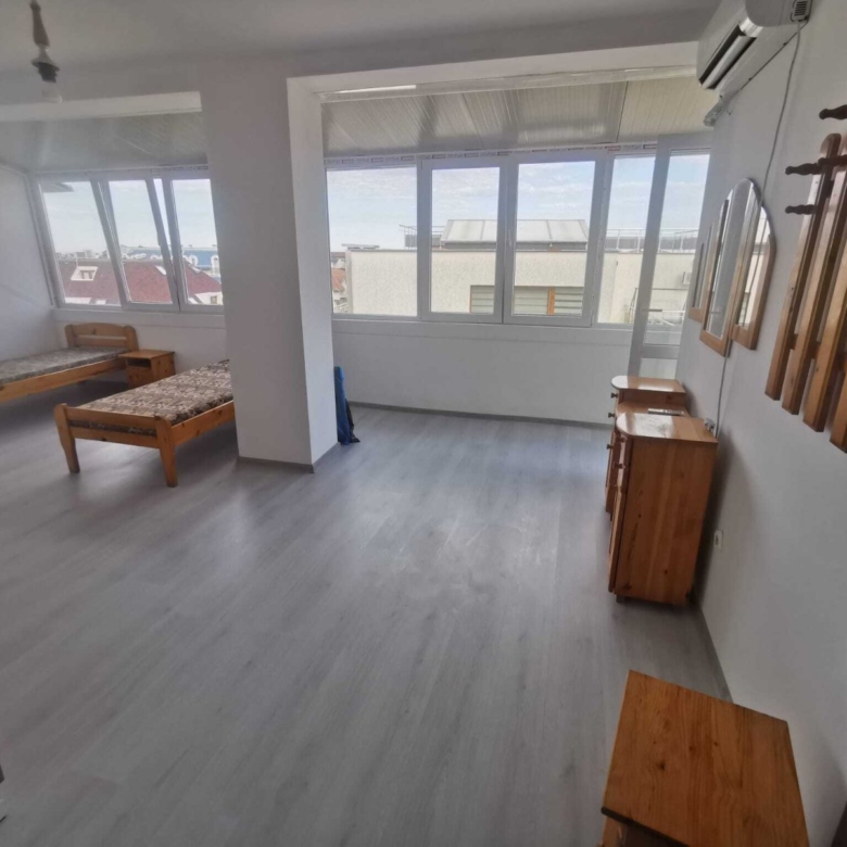 We offer you a 2-bedroom apartment with no maintenance fee in a private house in Ravda, Bulgaria. The apartment is located on the 4th floor, has an area of 87 m², and consists of a spacious living room with a kitchenette, a large bedroom, a bathroom with a toilet, and a terrace.
