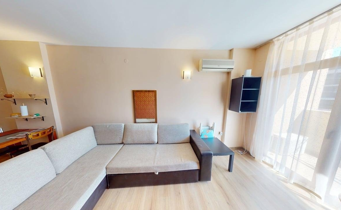 For sale is a spacious 2-room apartment with 67 m² of living space in the elegant Grenada complex in the southern part of Sunny Beach, Bulgaria. The apartment is located on the 3rd floor and is fully furnished – ready for immediate move-in or suitable for rental.