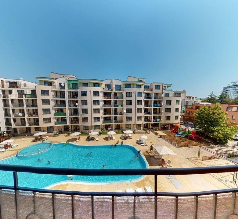 For sale is a 63 m² apartment in the popular Avalon complex in the holiday resort of Sunny Beach, Bulgaria. The apartment is located on the 4th floor of a 6-story building with an elevator and is fully furnished – move-in ready for immediate occupancy or rental.