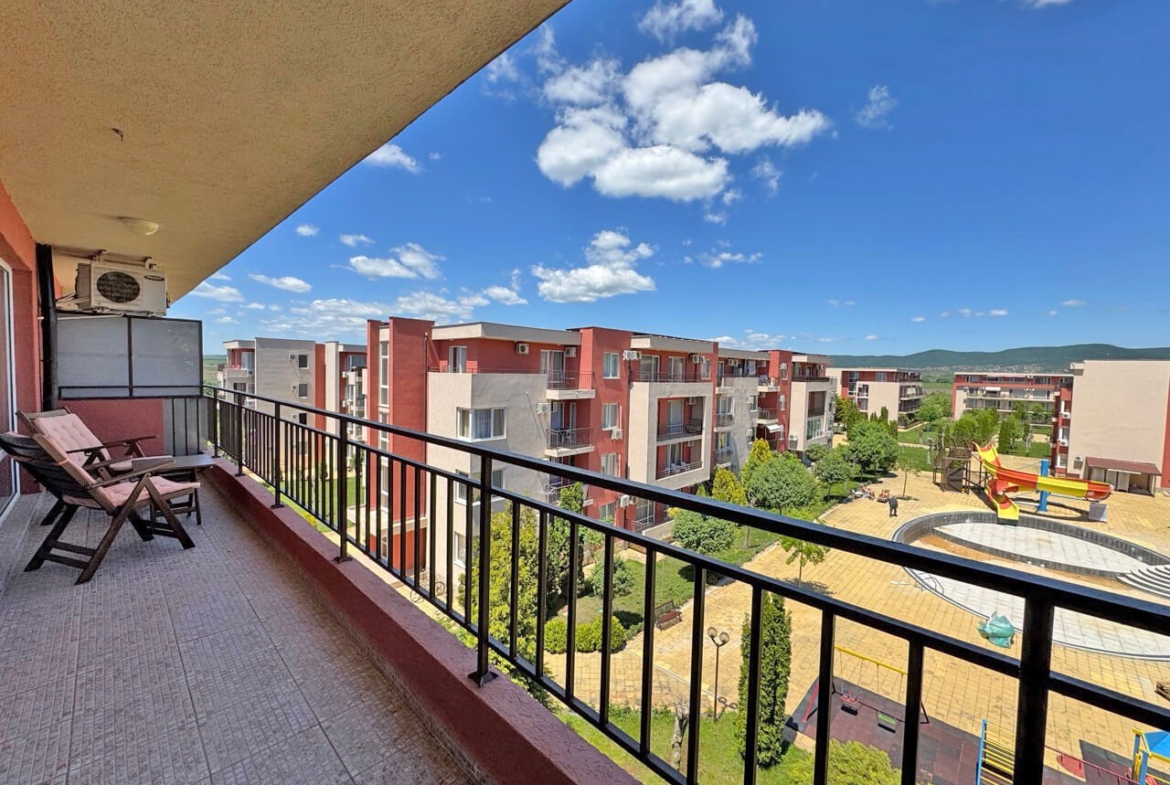 For sale is a cozy and well-equipped two-room apartment in the popular Holiday Fort complex in Sunny Beach, Bulgaria.