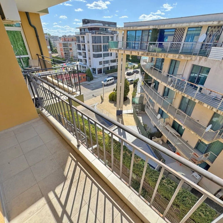 This stylish and fully equipped two-room apartment is located in the renowned residential complex Hermes in the quiet northern part of the popular resort of Sunny Beach on the Bulgarian Black Sea coast. The complex is distinguished by its high-quality construction, well-maintained communal areas, and prime location—only about 500 meters from the fine sandy beach.