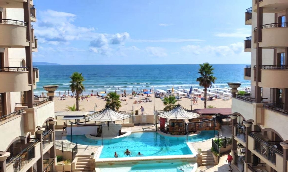 Two-Room Apartment with Direct Sea View, Fully Furnished, with Air Conditioning and All Necessary Appliances at Sunny Beach