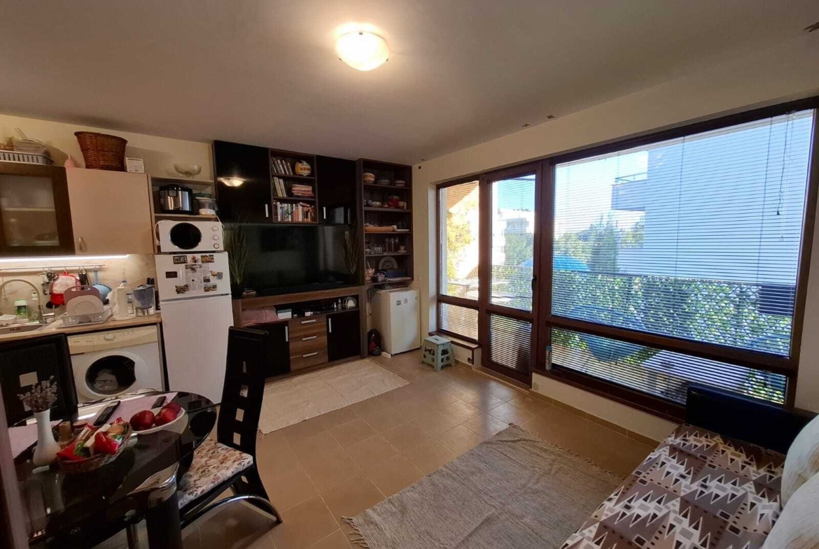 Cozy studio (40 m²) on the 4th floor of the popular Diamond complex in Sunny Beach. The apartment is fully furnished and equipped – ideal for vacation, rental, or year-round living. The complex offers a swimming pool, well-maintained green areas, and is just a few minutes’ walk from the beach and promenade.