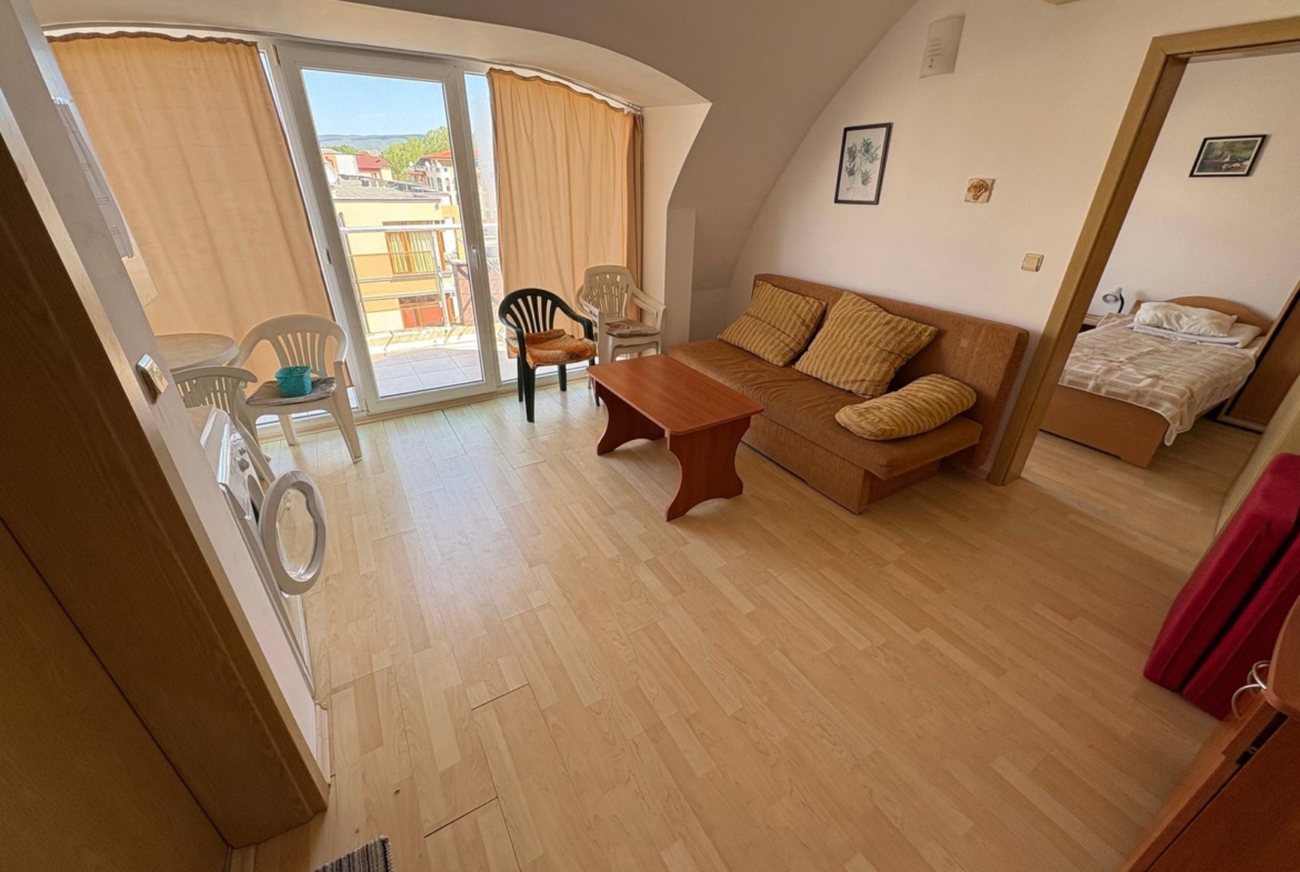 We are pleased to offer you a cozy 2-room apartment in the popular Stella Polaris complex in Sunny Beach. The apartment is located on the 6th floor (out of 6) and provides a practical layout over 48 m² of living space, as well as a balcony with a beautiful distant view.