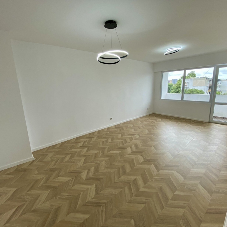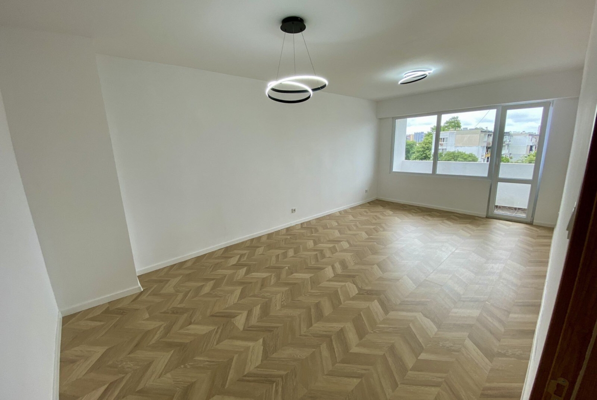 Two-room apartment in the Troshevo district, very close to Dobri Chintulov Primary School. The apartment is located on the 6th floor of a total of 8 in a well-maintained building with controlled access. The apartment faces east and west, has a built-up area of 60.59 m² and features the following layout: large living room of 24 m², bedroom of 13 m², kitchen of 10 m², L-shaped hallway, shared bathroom, and cellar. The living room has a private terrace. The apartment has been fully renovated and is offered as move-in ready.