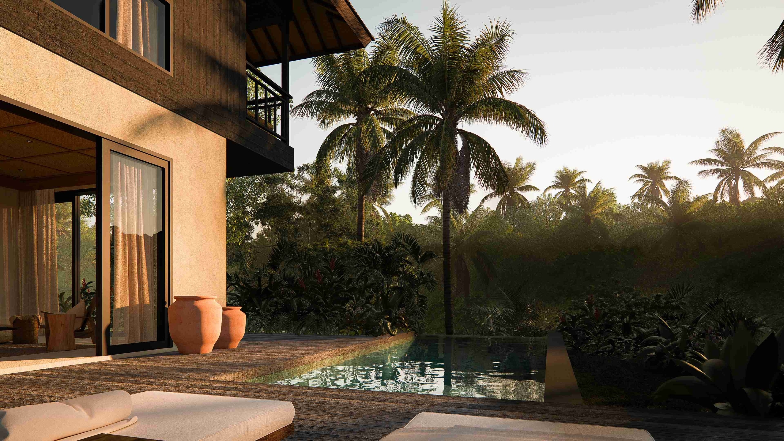Villa Types: 2 1 and 3-bedroom configurations available. The 2-bedroom option features an attic, potential for a 3th bedroom – customizable to your needs.