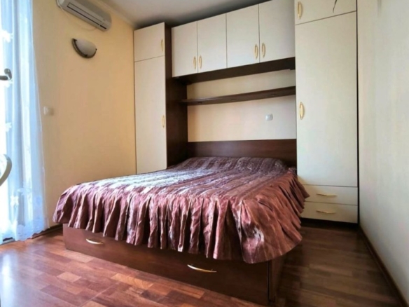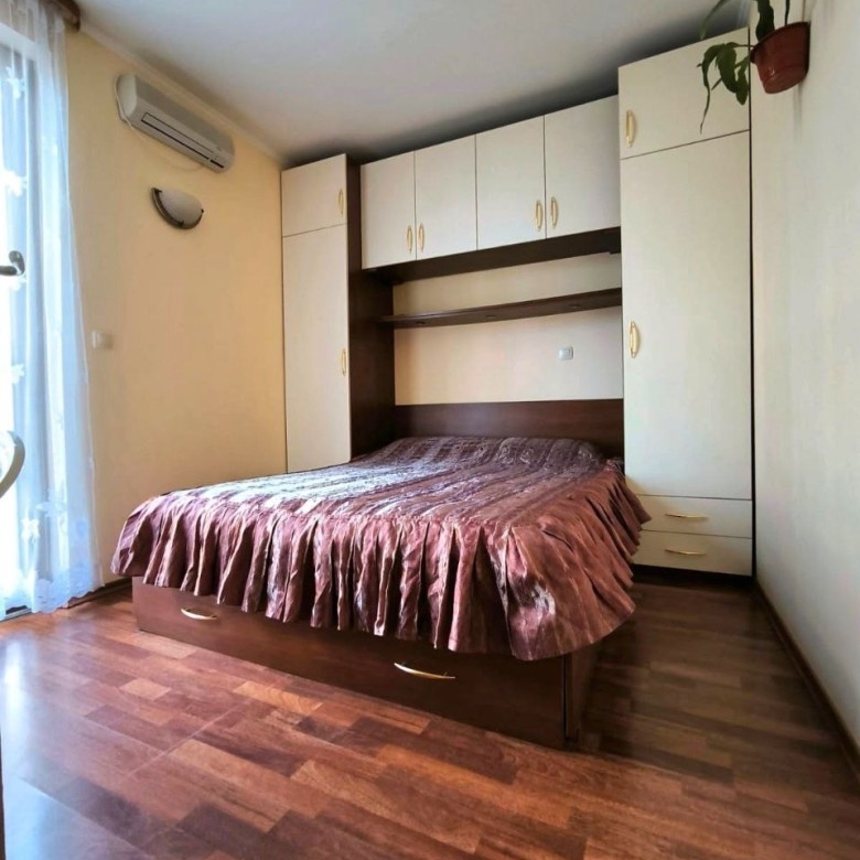 We are pleased to offer you this very 2 BED apartment, fully furnished, situated in complex Sirena in St. Vlas resort. The apartment has a living area of 75 sq.m. and is set on the 3rd floor (no lift) and comprises of: – kitchen with living-room; – 2 bedrooms; – bathroom and toilet; – balcony with a sea view; The apartment is completely finished and furnished.. It is excellent for living all-year-round and for holiday rentals. Sirena is a very nice boutique complex of holiday apartments, located in the southern part of the luxury resort of Sveti Vlas. The complex is placed at the lower eastern part of the Balkan Mountains, 60 m from the main road St. Vlas – Elenite resort and 100 m from the Orthodox Church “St. Vlasii”. The complex is set 10 minutes’ walk from the beach Sveti Vlas East and 12 minutes’ walk from the beach front complexes “Etara 1” and “Garden of Eden”. The area offers excellent opportunities for swimming and for practicing a variety of water sports, spa treatments and fishing. Sirena complex is made up of a small building on five floors with an elevator, where there placed 24 apartments – studios or one bedroom apartments. The views from the apartments are towards the Balkan Mountains and the sea, as well as complex “Etara 2”. Sirena: facilities and services * 24 hour security service * cafe * outdoor swimming pool with pool bar * childrens pool * Spa center with sauna, Jacuzzi, steam bath, solarium, massage room * fitness center * hairdresser and beauty salon * children’s playground * tennis court * business center with internet access and conference room * rent-a-car services * not all of these services are located in the complex. Some of them are available 2 to 6 minutes away. Annual maintenance fee – 625 EUR