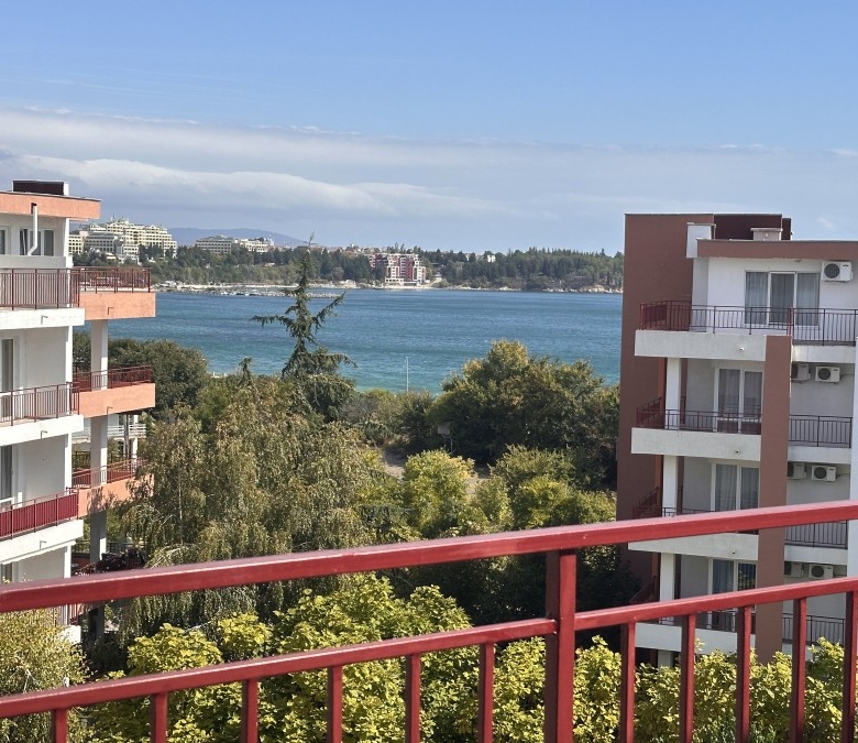 2 BED top floor apartment, 112 sq.m., with a large terrace and sea views, in Riviera Fort, Ravda We are pleased to offer you this apartment with exclusive location – on the first sea line in the coastal village of Ravda. Nessebar town is just 2 km away, while Sunny beach resort is at a distance of 5 km. The area of the property is 111.8 sq.m. and is situated on the 6th – top floor and has the following layout: entrance hall, living room, two bedrooms, bathroom with toilet and big terrace with sea views. The property is offered for sale furnished and equipped, ready to move in. The complex offers: * swimming pool * childrens swimming pool * childrens playgrounds * restaurant * bar * massages * a tennis court * soccer field * guarded parking Riviera Fort is suitable for living and for summer holidays by the sea or to rent it out. Annual maintenance fee: 14.5 EUR/ sq.m.