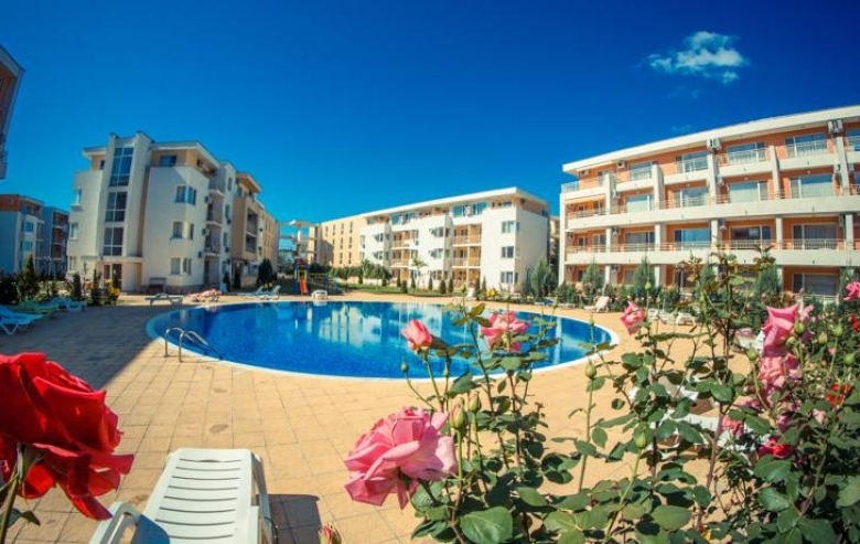 2 BED top floor apartment, 66 sq.m. in Holiday Fort Club, Sunny beach! KC Properties is pleased to offer you this property at a very attractive price. The apartment is situated on the 4th – top floor and has a total living area of 66 sq.m. and comprises of: – Open-plan kitchen with lounge and dining area; – 2 bedrooms; – Bathroom/WC; – Big balcony with panoramic views. The apartment is offered fully furnished and equipped. It is suitable for permanent living and for renting out during the holiday season. The property has a very convenient location – it is situated opposite the biggest Aqua Park on Black Sea coast. Distance to the beach is 900 m. Holiday Fort Club is the first complex in Sunny Beach resort with its own golf course! It is suitable for exciting family vacation during the summer and also for a comfortable year-round living on the best Bulgarian Black Sea resort – Sunny Beach. The apart-complex is located right next to the lovely Aqua Park and 10 minutes walk from the lovely beaches of Sunny Beach.. The location of the complex is very advantageous – it is just outside the overcrowded center of the resort and at the same time on walking distance from the magnificent beaches of Sunny Beach and the exciting night life in the resort. It is in less than 500 meters from the center of Sunny Beach resort where you can find a variety of entertainments. The garden area of the complex is a colorful combination of natural plants and trees. Owners and guests will feel comfortable in the cozy atmosphere of the recreation zones with water, rocky gardens and a view over the green areas. The landscaping (plants and green areas) covers more than 45 000 m2 (over 4.5 acres), which is around 65 % of the total area of the plot on which the complex is built. An ideal place to live and spend the summer holiday! The owners of apartments in the complex will become members of our GOLF CLUB and can practice their strikes and pads and improve their golf skills the whole year round on the GOLF CLUB which consists of: – Driving range for initial strikes; – 2 fairways 120 meters each; – Training putting Green. Infrastructure: – 2 restaurants Bulgarian and European cuisine; – Bar; – 9 swimming pools for adults and children, with lifeguards and free of charge sun lounges; – 2 water slides; – Billiard and table tennis; – Supermarket; – Shops; – Currency Exchange desk; – Children’s playground with swings and slides; – “Relax” zone “oasis” with trees, flowers and grass; – outdoor fitness; – Tennis club; – Internet club; – rent a car; – Massage; – Free parking for owners and guests; – Golf Club and Training putting Green with 15 holes; – 2 offices – receptions where all kind of services and tours are offered The owners pay an annual maintenance and management tax, in amount of 14.5 euro per square meter of the total area of the apartment. The complex is designed for comfortable year round living. It is with private and secured territory.