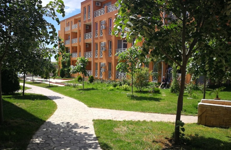 2 BED top floor apartment with 3 terraces and panoramic views, 80 sq.m., Sunny Day 6 KC Properties is pleased to offer you this spacious top floor apartment situated in the holiday village Sunny Day 6 in the outskirts of Sunny beach. Sunny Day 6 is a gated complex with 5 outdoor pools, restaurant, supermarket, pool-bar, tennis courts, sport fields, parking, reception, video surveillance and 24/7 security. The complex is located 3 km to the sea coast, 7 km to Nessebar town and 34 km to the nearest International airport in Bourgas. There is regular shuttle service during the summer season connecting the complex with Sunny beach and Nessebar. The apartment which is for sale is situated on the 4th – topfloor and has a total area of 80 sq.m. It comprises of: – Open-plan kitchen with dining and lounge area; – 2 spacious bedrooms; – Bathroom and toilet; – 3 terraces The apartment is offered stylishly furnished and is ready to use. The property is in excellent livable condition and doesn’t need repair works. Annual maintenance fee – 580 EUR/year.