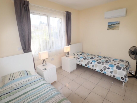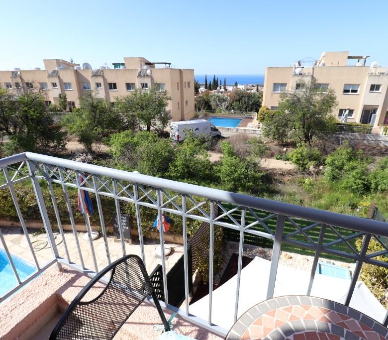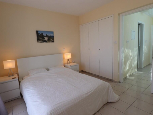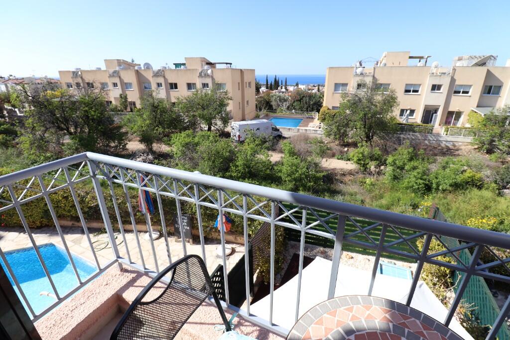 * Panoramic Vistas: The Enchantment of the Main Bedroom Balcony: The main bedroom is graced by a private balcony that unveils breathtaking panoramic views encompassing the shimmering expanse of the sea, the inviting communal pool, and the verdant tapestry of the surrounding hills. This tranquil outdoor space serves as an idyllic retreat, perfect for savoring morning coffee, basking in the warmth of the Cypriot sun, or simply unwinding while absorbing the captivating scenery.