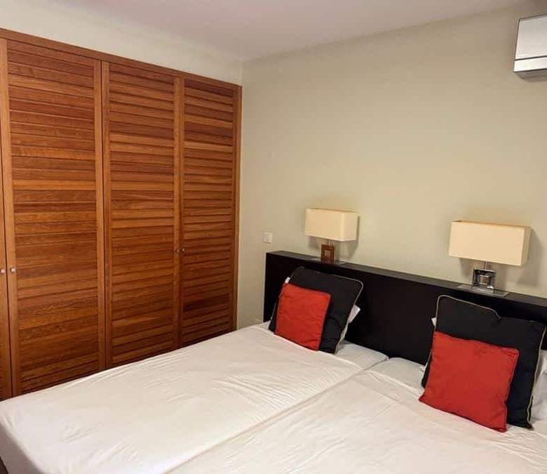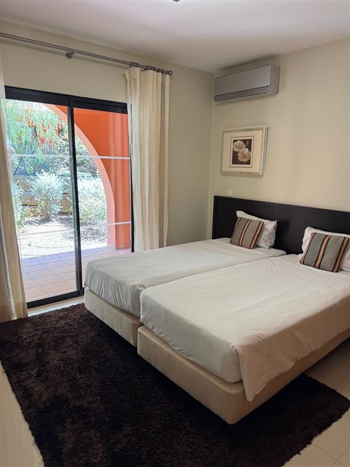 This terrific two-bedroom ground-floor corner apartment is located in the prestigious Amendoeira Golf Resort in Alcantarilha, Algarve.Nestled within the renowned Sir Nick Faldo and Christy O’Connor golf courses, this spacious apartment offers a bright and airy living space that opens directly onto a private outdoor patio—ideal for relaxing or entertaining.The modern, fully equipped kitchen complements the stylish interior, while both generously sized bedrooms provide a serene atmosphere and benefit from direct access to outdoor areas. Situated on a desirable corner plot, the apartment enjoys enhanced privacy and abundant natural light throughout.Residents have access to a wealth of premium amenities, including world-class golf facilities, swimming pools, a professional gym, tennis courts, and fine dining options—all within the resort. Whether you’re seeking a holiday retreat, a permanent residence, or a savvy investment opportunity, this property offers exceptional versatility. The onsite management service also provides a hassle-free rental solution for owners.Located in Portugal’s premier golf destination, the resort boasts two championship 18-hole golf courses, a 9-hole floodlit course, and outstanding leisure facilities.