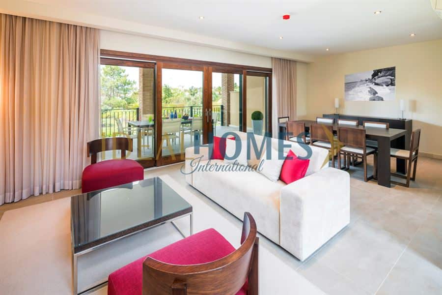 This two bedroom townhouse for sale in Carvoeiro benefits from tranquil countryside surroundings, while the bustle of the village is only a short drive away. Offering a total house area of 408,9m2, this property comprises an open plan living room, dining area, kitchen, two bedrooms, two bathrooms, private terraces, garden and swimming pool.The internal area is 238,2m2 which does include the basement with a size of 97,75m2 – and terraces are 38,8m2, along with the garden and pool area totalling 132m2. Additionally, this property offers lake and sea views. This exceptional resort has been commissioned to the highest of standards and luxurious specifications. On a plot of 2.5 hectares, the 31 townhouses and one villa overlook its own natural lake with an ocean backdrop view. Ranging from 240,65m2 and 321,80m2, these impressive homes offer a substantial living space spread out over three floors.With a choice of two or three bedrooms, each home is designed to capture the essence of comfortable and harmonious living. This exclusive resort offers great accessibility to the vibrant village of Carvoeiro, where residents can enjoy a wide range of leisure and entertainment facilities.
