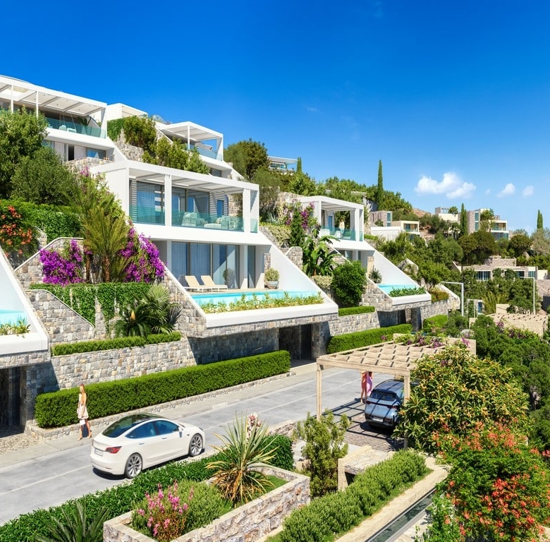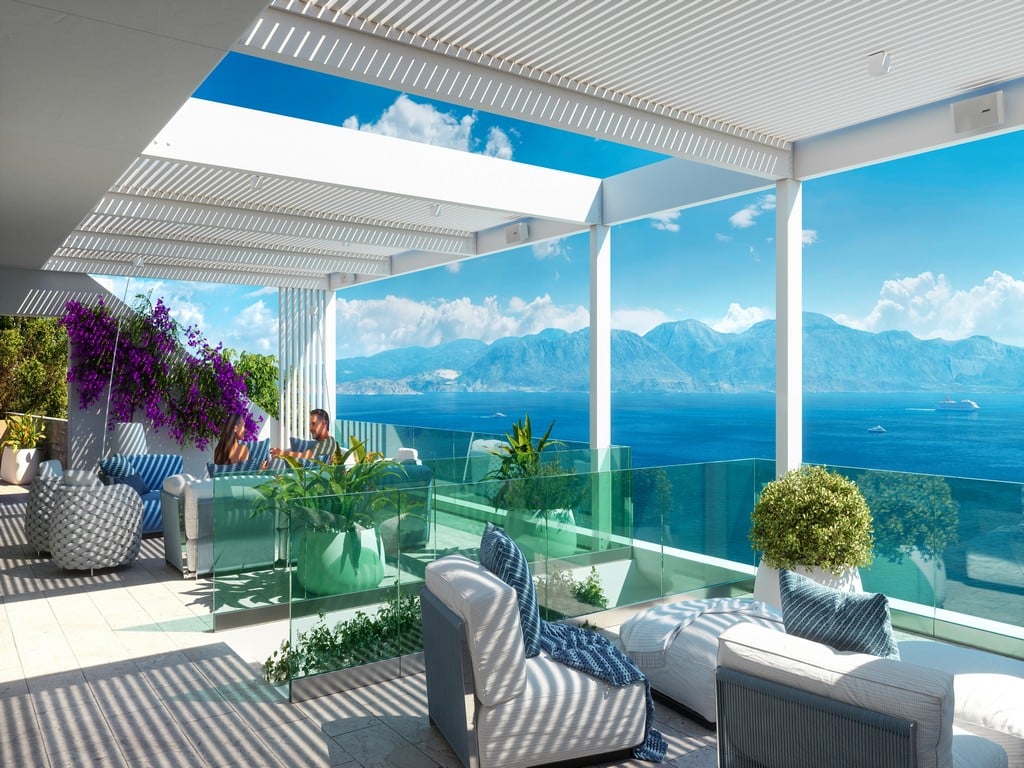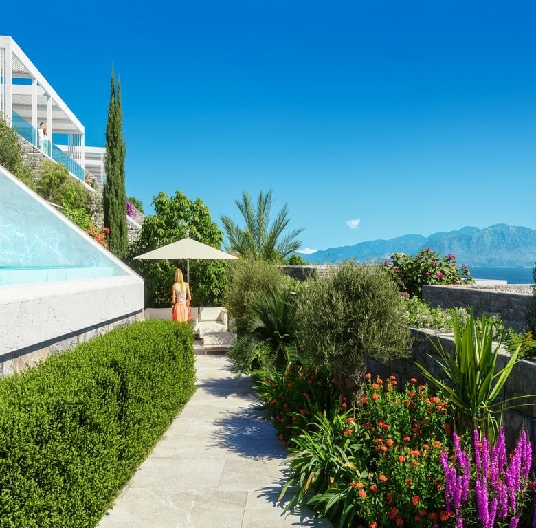 Welcome to the Terrace Villas – a limited collection of just sixteen luxurious 2- and 3-bedroom duplex villas, perfectly positioned on the coast of Crete with panoramic views over the shimmering waters of Mirabello Bay. Designed to embrace the essence of modern Mediterranean island living, these spacious homes range from 245–350 sqm of beautifully finished interiors, with expansive terraces and landscaped gardens of up to 2,000 sqm.