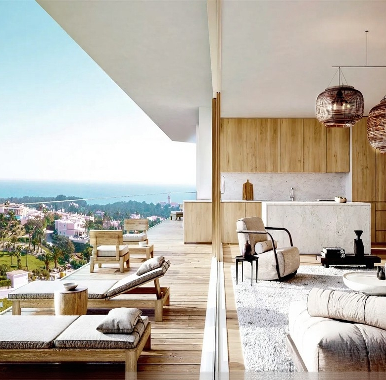 The terrace extends along the apartment. The apartment receives plenty of natural light and large windows that unite the indoor and outdoor spaces into one. Included in the condominium is a resort and beach Shuttle (in high season), three swimming pools, landscaped gardens, a restaurant, bar and gym.