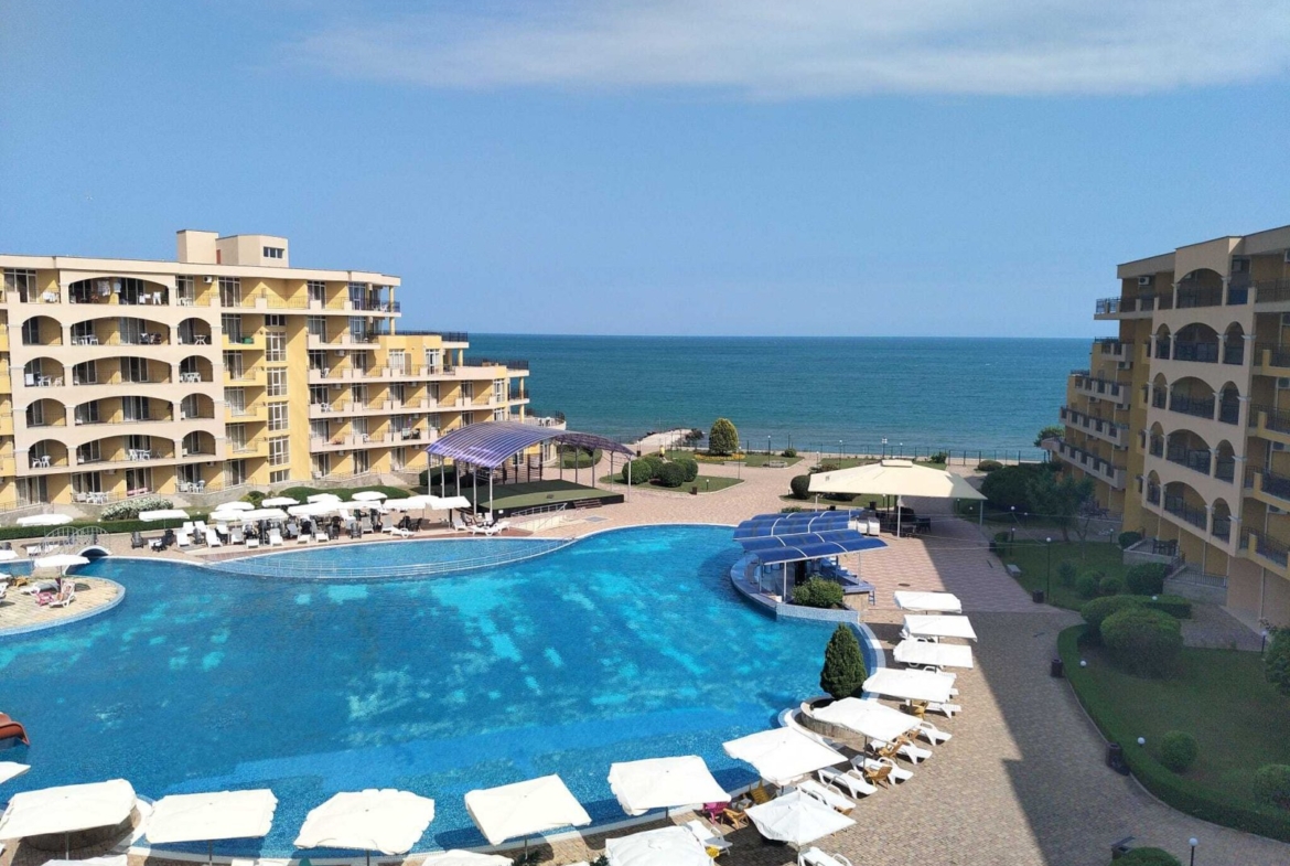 We present to you an exclusive unfurnished 3-room apartment with direct sea view in the popular Midia Resort in Aheloy. The apartment is located on the 4th floor of a building with an elevator and offers approximately 100 m² of thoughtfully designed space and an extraordinary living experience.