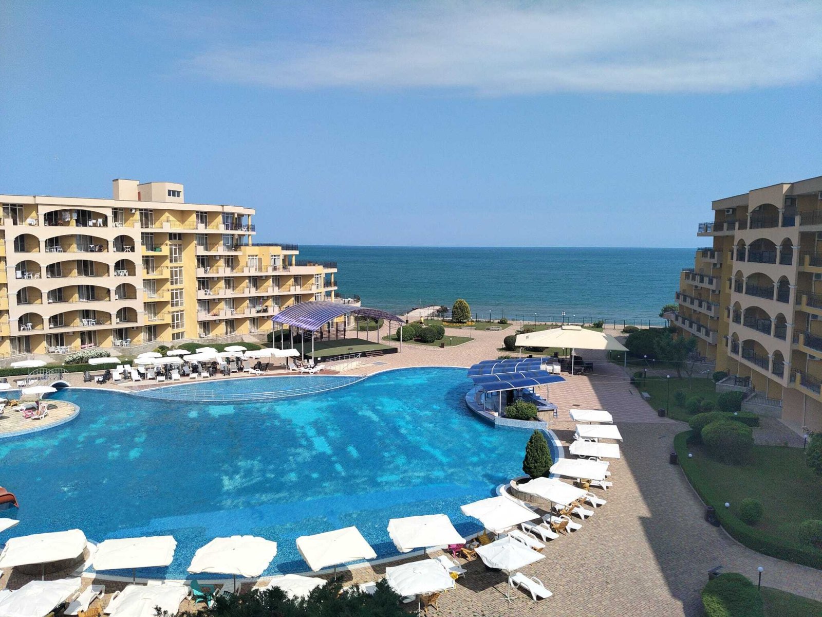 The Midia Grand Resort is located in Aheloy, Bulgaria, directly on the Black Sea coast. The property is situated right by the sea and offers a private beach area.