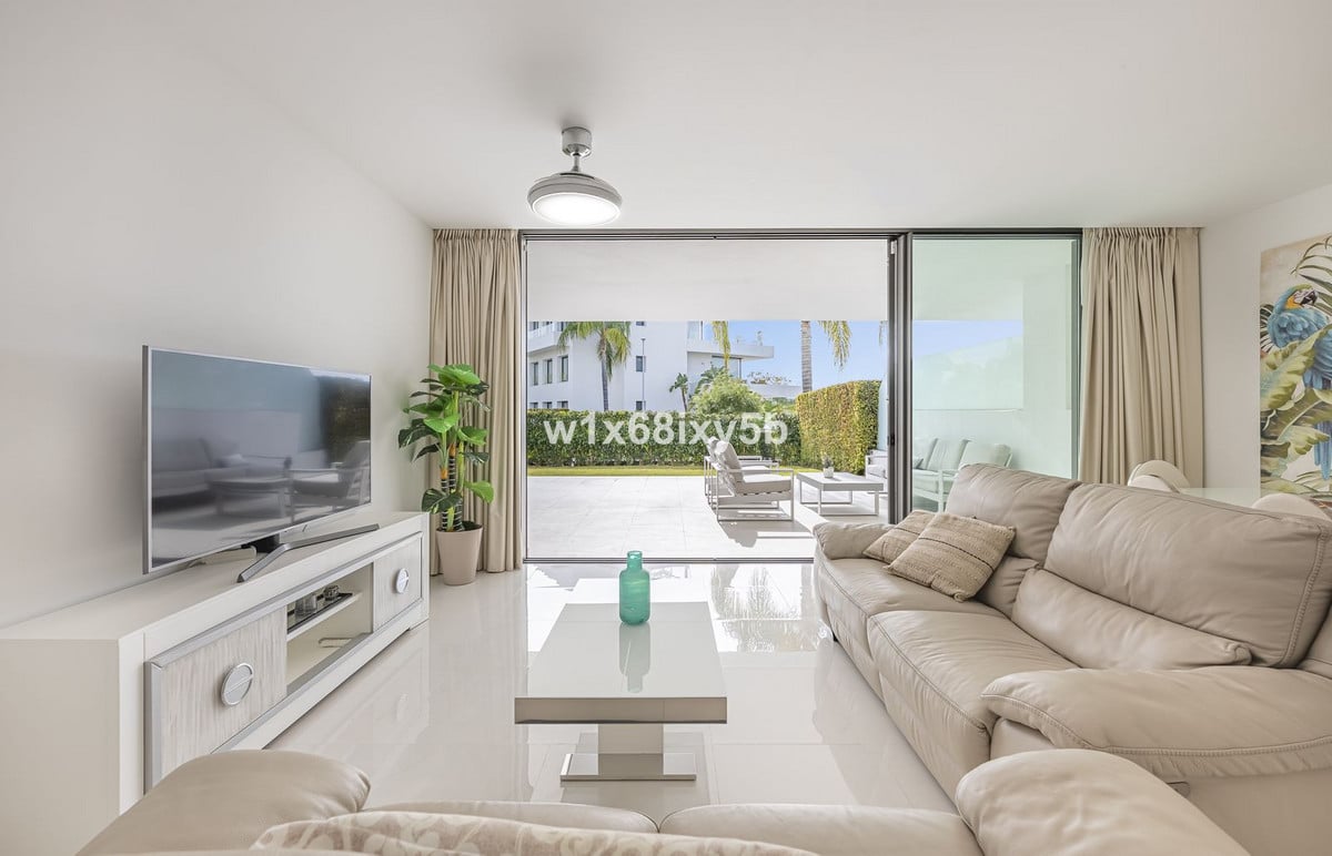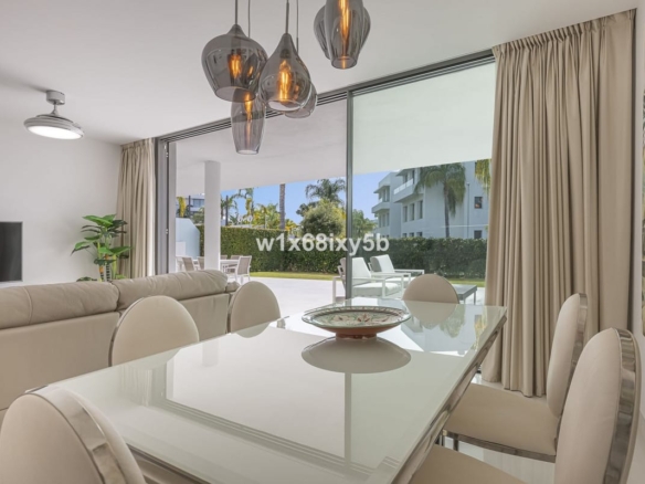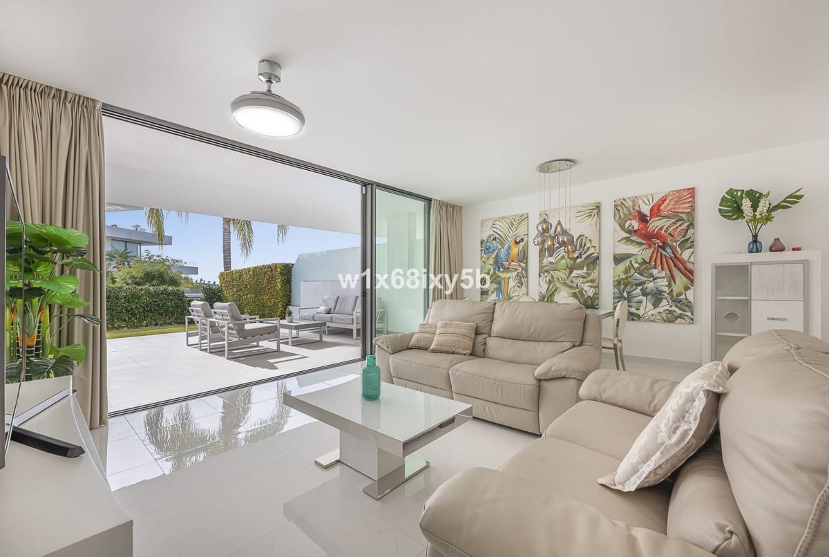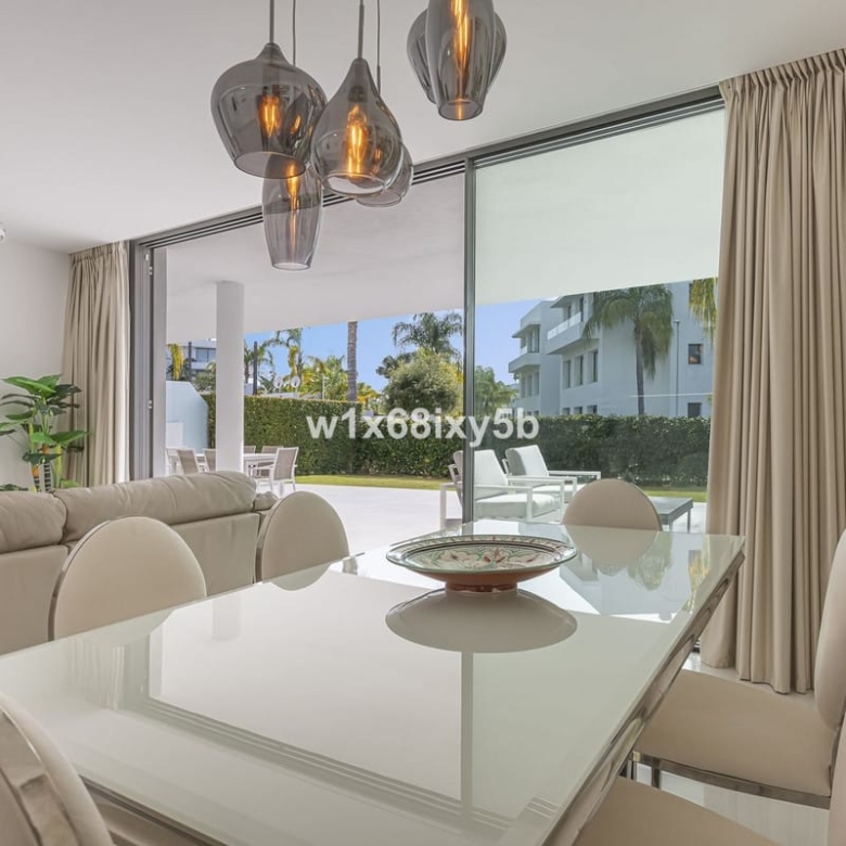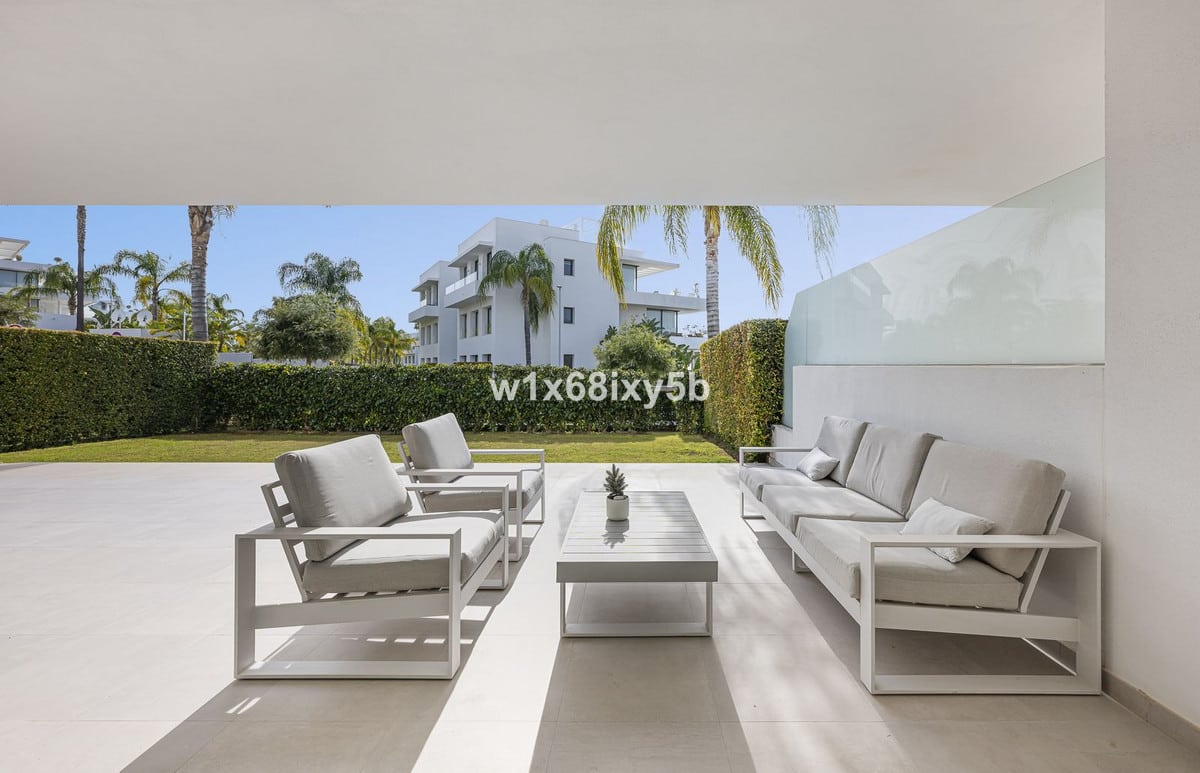 The open concept design perfectly integrates the living room, dining room and kitchen, equipped with high-end appliances and furniture from the prestigious Porcelanosa brand. One of the great attractions of this apartment are its spacious terraces, accessible from the living room and both bedrooms, which allow plenty of natural light to enter and create a warm and welcoming atmosphere. The private garden, for the exclusive use of the apartment but maintained by the urbanisation, offers a natural space ideal for relaxing or entertaining guests.