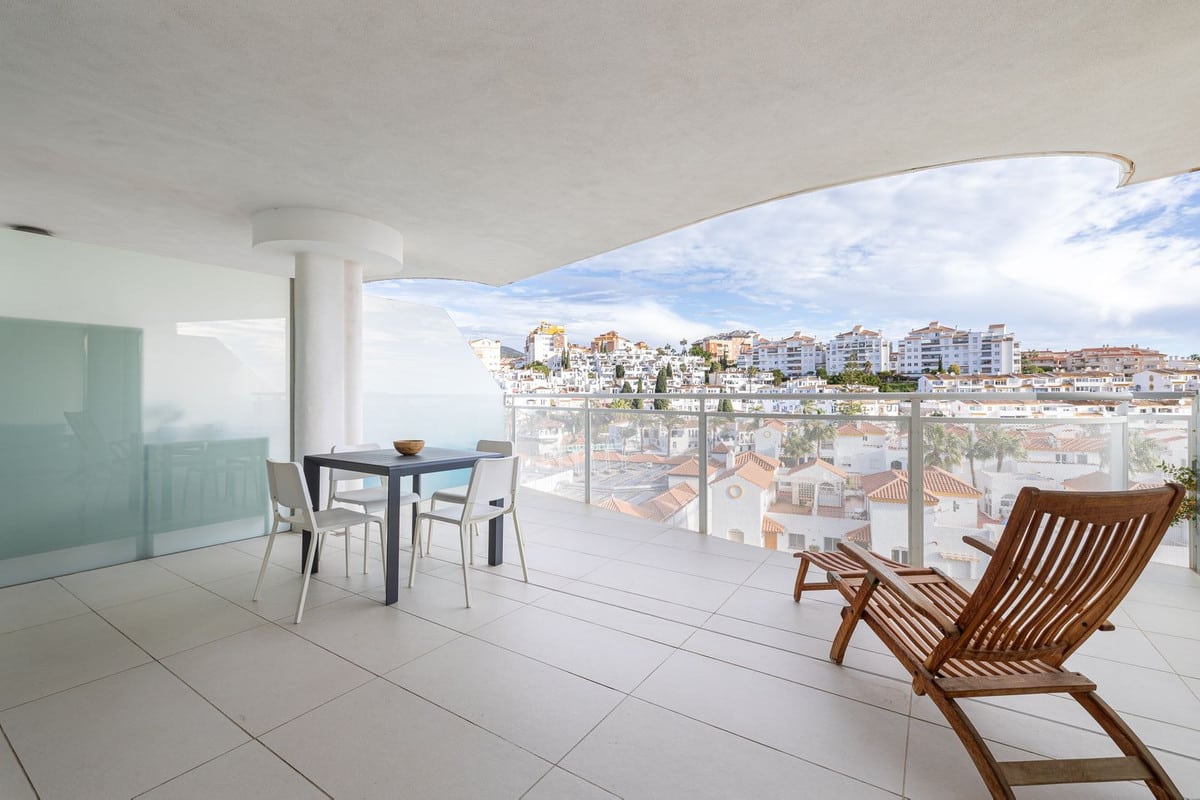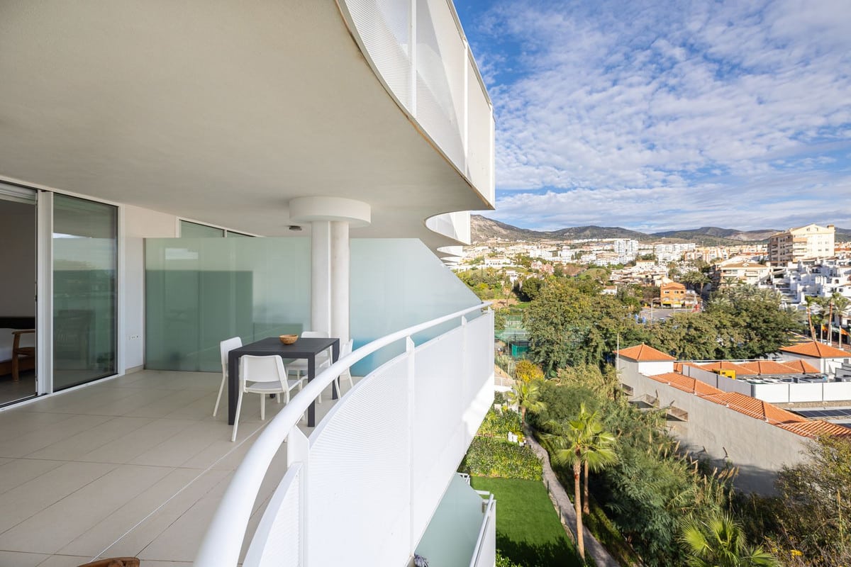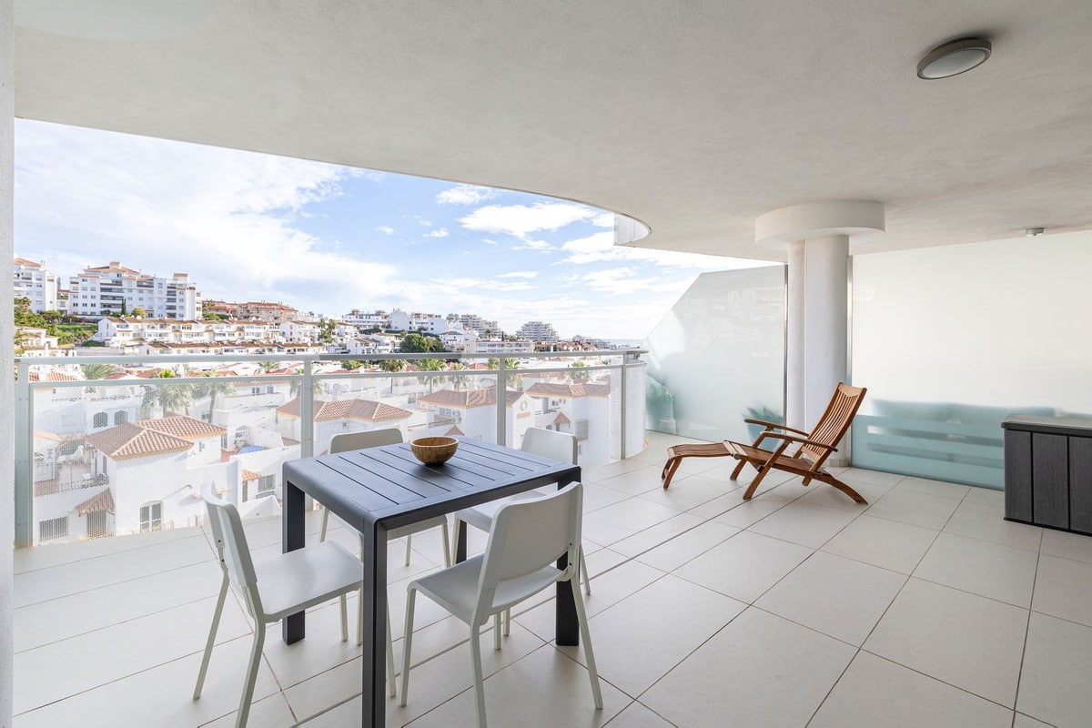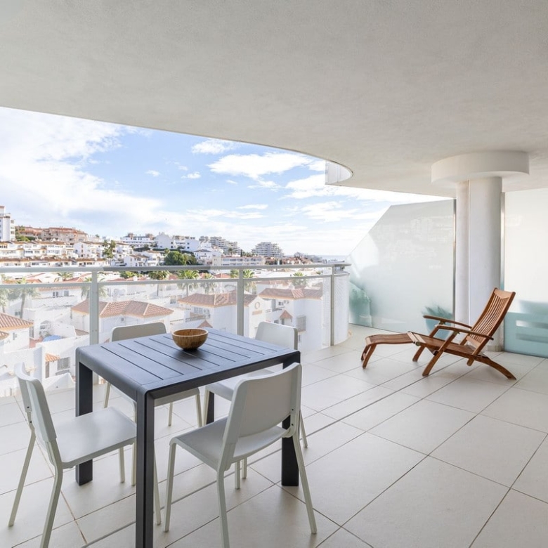 Step onto the spacious terrace and soak in the panoramic vista – charming Spanish houses with the majestic Benalmadena mountains as a backdrop. The covered terrace provides welcome shade during the day, creating an ideal space for relaxation and outdoor dining.