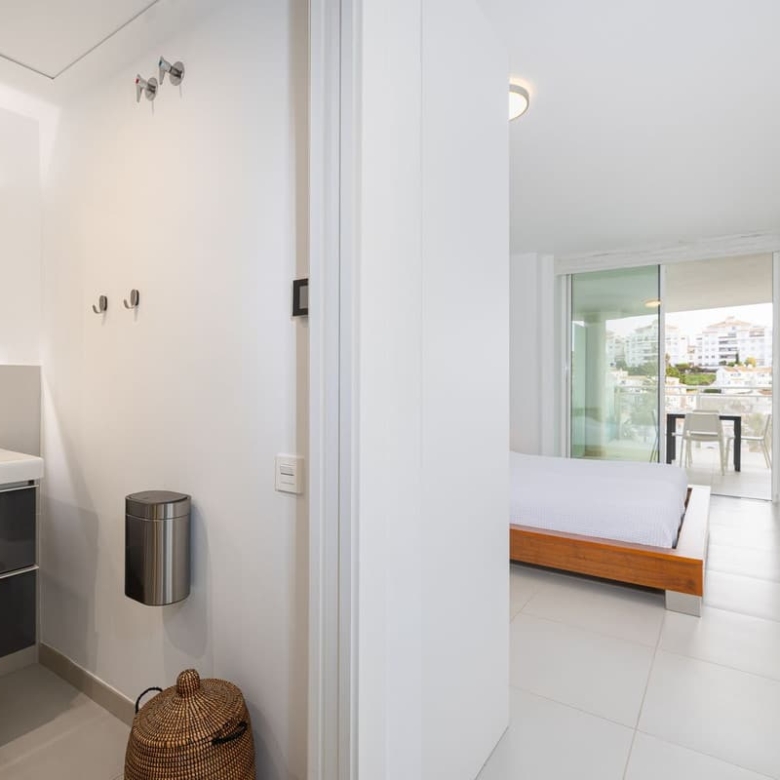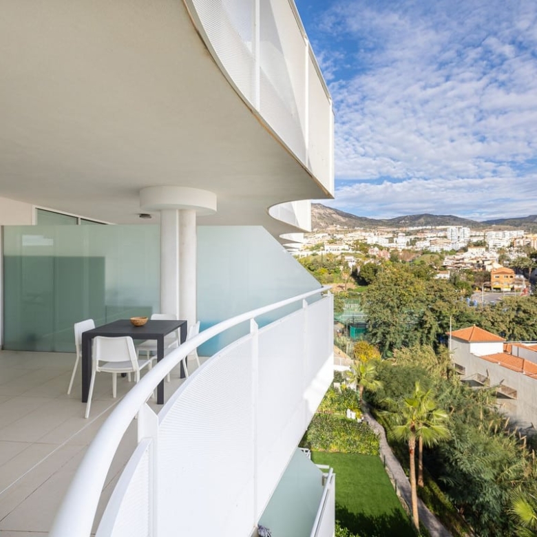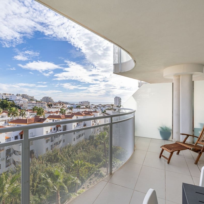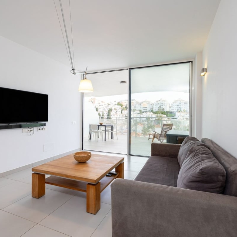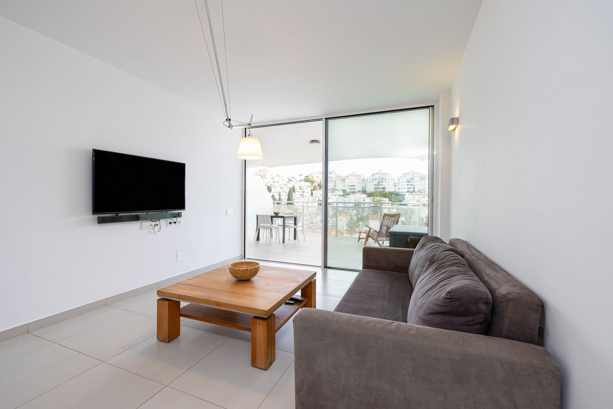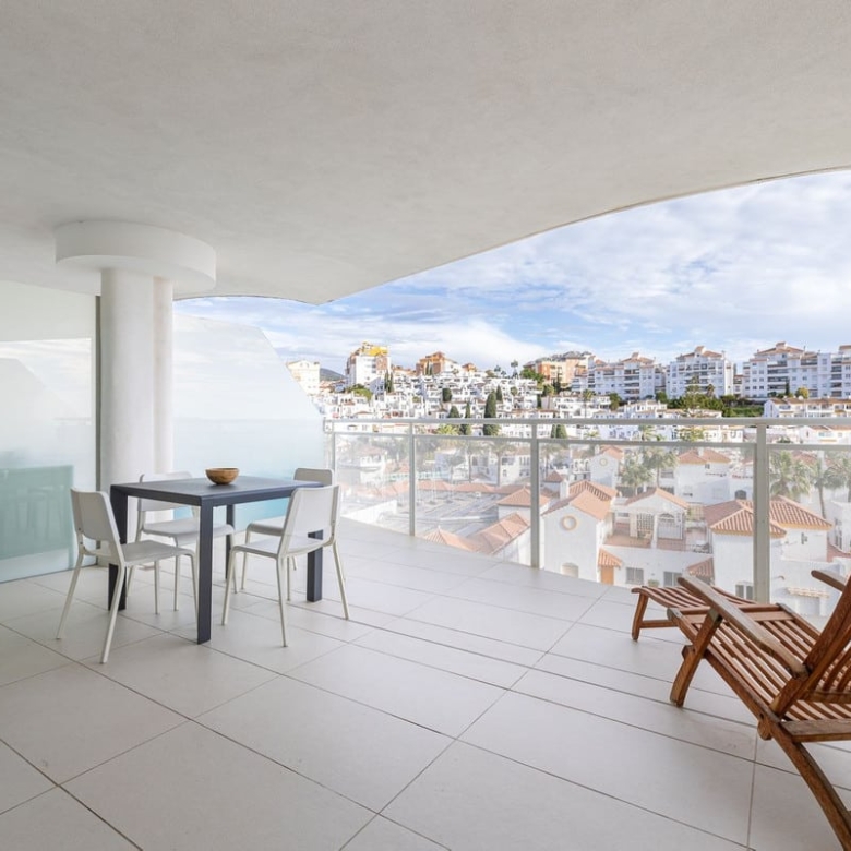 Step onto the spacious terrace and soak in the panoramic vista – charming Spanish houses with the majestic Benalmadena mountains as a backdrop. The covered terrace provides welcome shade during the day, creating an ideal space for relaxation and outdoor dining.