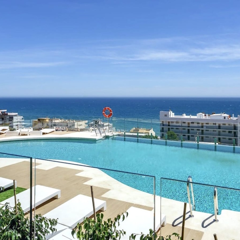 REDUCED (NOW BEST VALUE iN DEVELOPMENT) Stunning newly built 2 bed luxury apartment with breathtaking 180º Mediterranean sea views. Only 100m to beach, shops & restaurants. Set in exclusive El Higueron luxury Sports / Spa community with own beach Club.