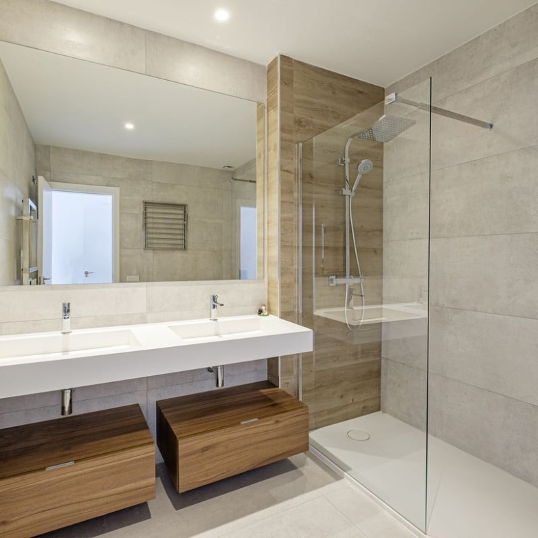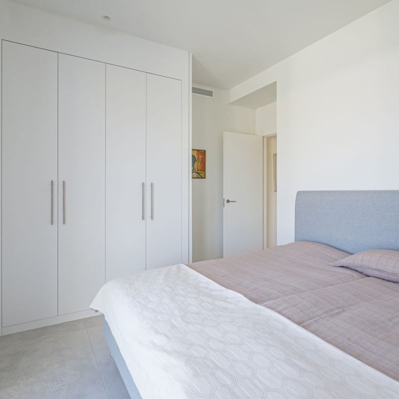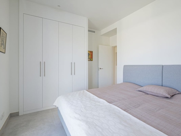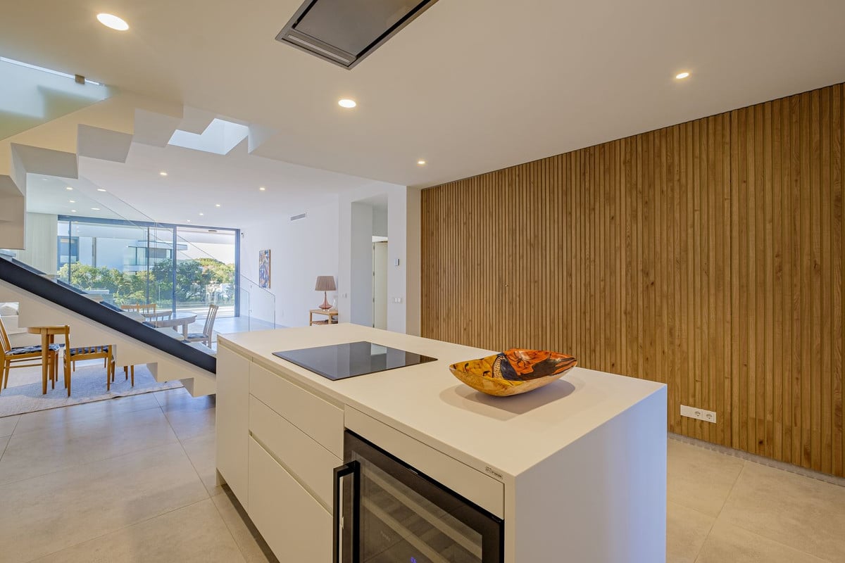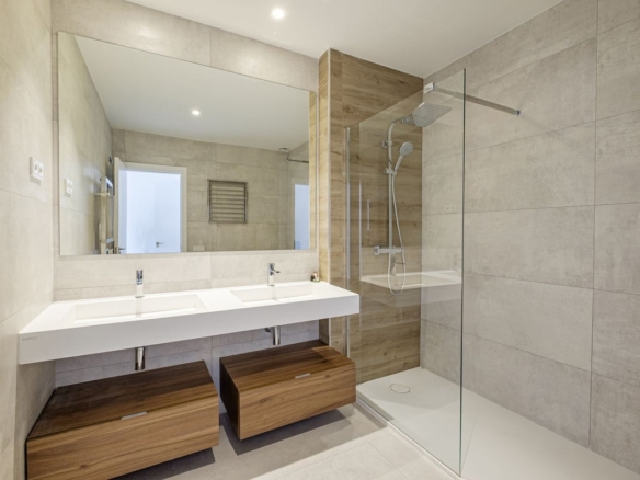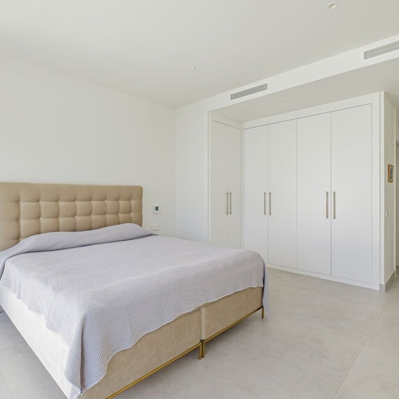 The living area opens directly onto a large private terrace offering views of the sea as well as of the beautifully designed community pool and gardens with wooden walkways and a tranquil water feature running the entire length of the urbanisation.