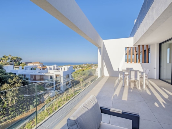 Luxurious 2-bedroom penthouse in Cabopino with extensive outdoor space including a solarium with private pool.