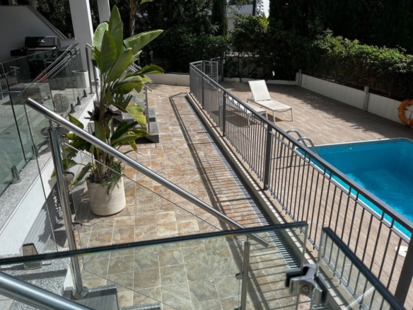The apartment spans 81.19 m2 (with 72.22 m2 of usable space) and features an 18 m2 terrace, positioned on the ground floor with immediate access to the pool. it comprises two spacious bedrooms, a bright and open living area, a fully equipped kitchen, and two modern bathrooms. The expansive windows invite abundant natural light, enhancing the cozy environment. The living room opens onto a private terrace that offers direct sea views.