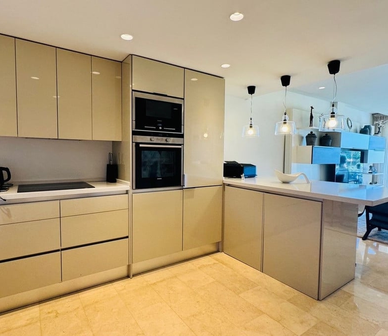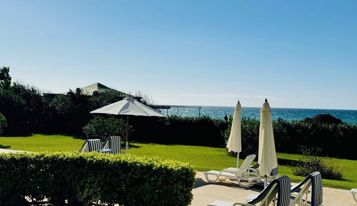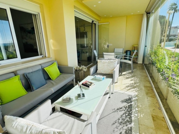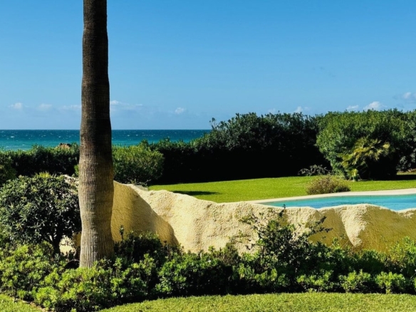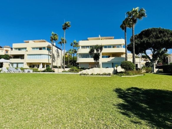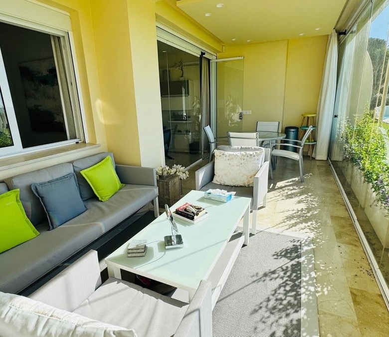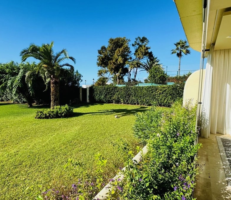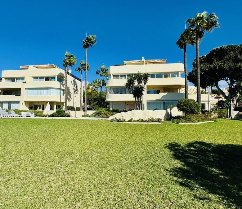 Frontline beach apartment for sale in Elviria, Marbella. Rare opportunity to acquire a frontline beach property in the very exclusive area of Elviria located 15m drive from Marbella. This 2 bedroom 2 bathroom ground floor apartment is totally renovated modern style and is sold fully furnished. The contemporary open plan kitchen opens to the living room which leads to a covered terrace, equipped with glass curtains which can be opened when needed. The property is very bright and is part of a small very exclusive complexe of 14 apartments only, where all have stunning sea views. it is equipped with double glazing windows and electric blinds, Air conditioning Hot and Cold. The apartment has a private garden included in the title deeds and a private covered parking space. The community garden of 2400m has direct access to the beach. The size of the plot is exceptional for only 14 apartments. The beautifully designed pool, and gardens are all very well maintained. You are allowed to rent short term in this complexe, making the property a great little earner, perfect for an investor.