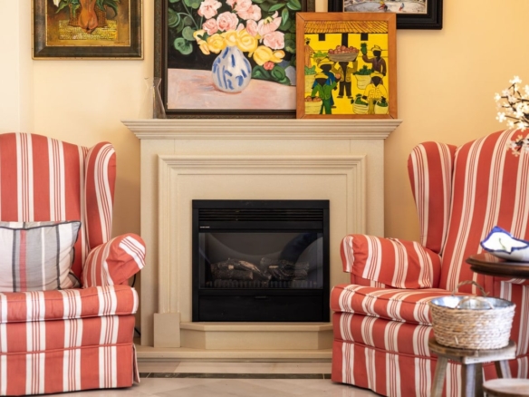 As you step inside, a refined entrance hall leads to a spacious living room with a fireplace, where natural light and breathtaking sea views take centre stage. The fluid layout and high-quality finishes create an inviting yet sophisticated atmosphere.