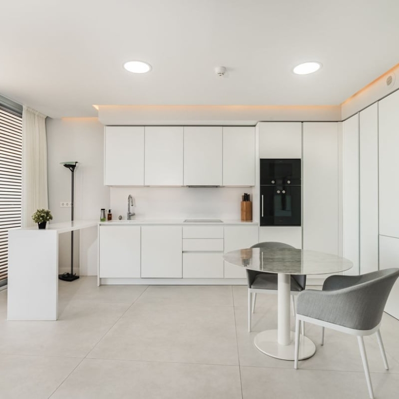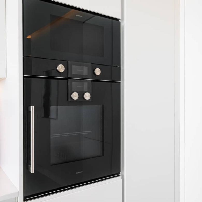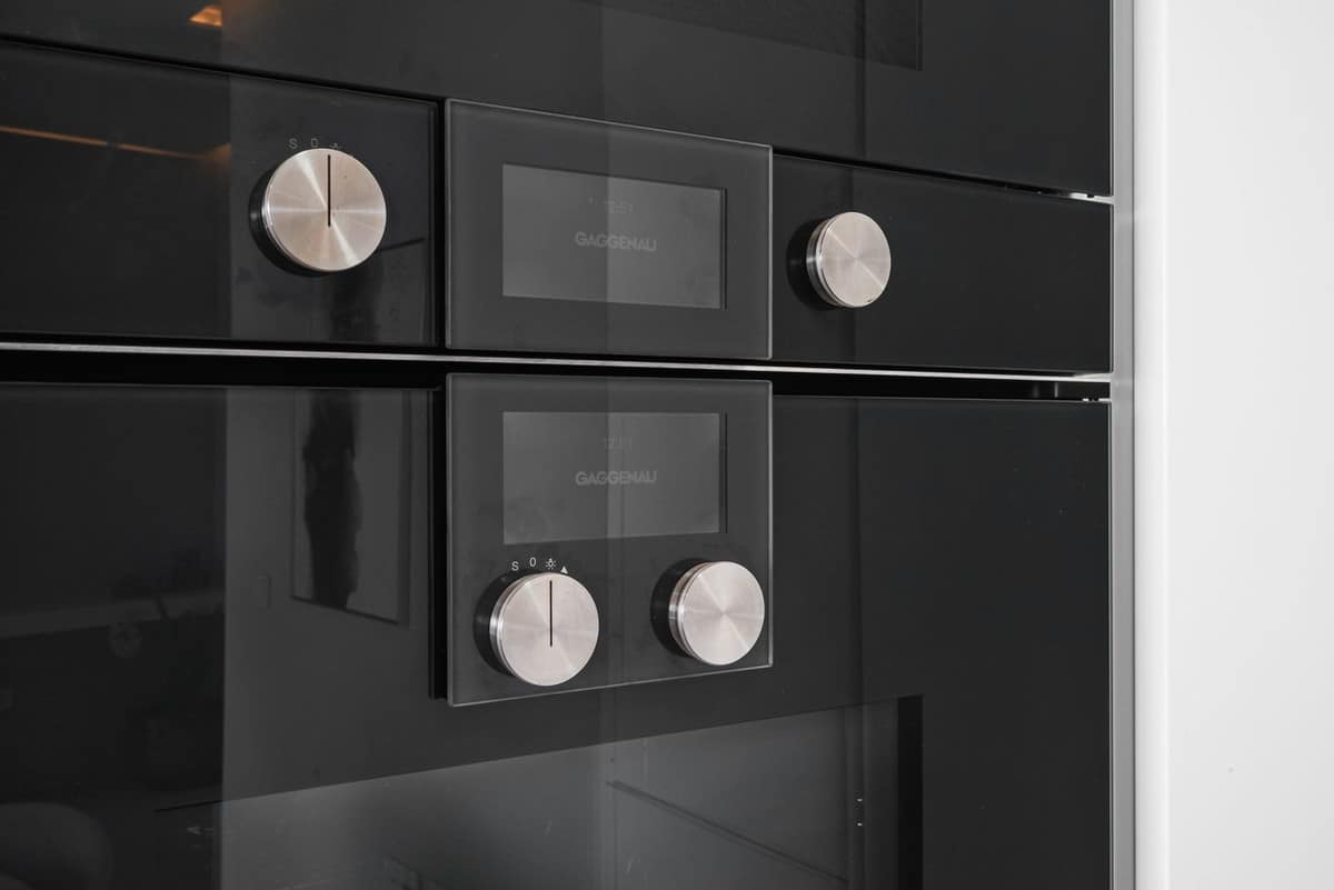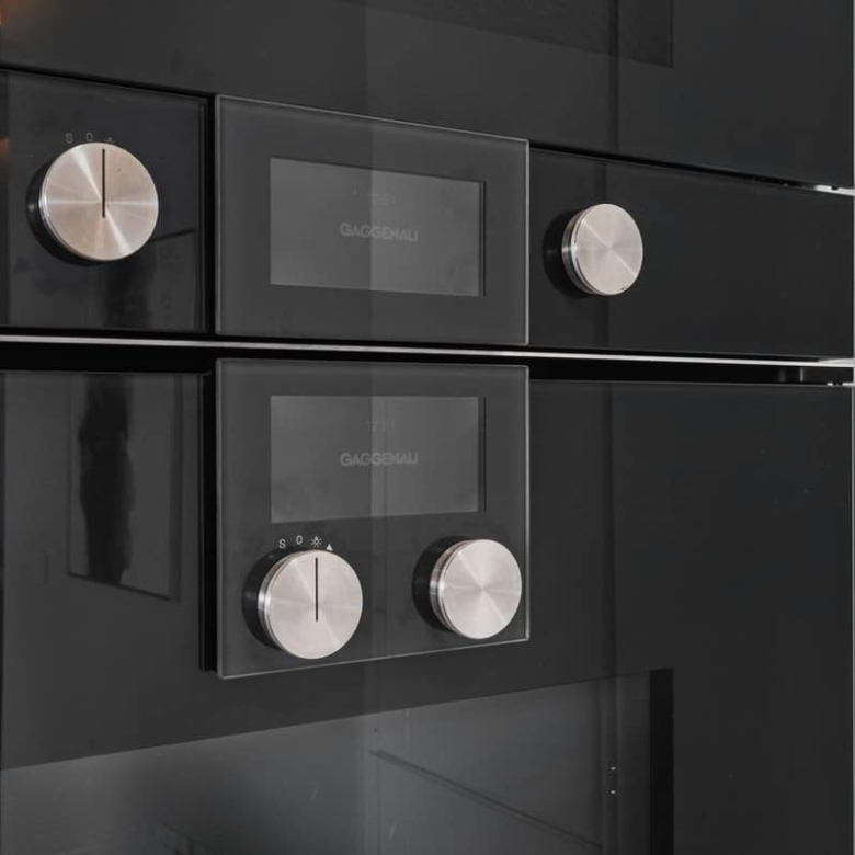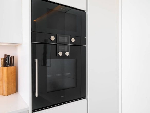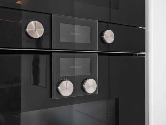 The kitchen is a chef’s dream, fully equipped with sleek Gaggenau appliances and a stylish design that seamlessly integrates with the living area—ideal for hosting guests or preparing family meals in an elegant space.