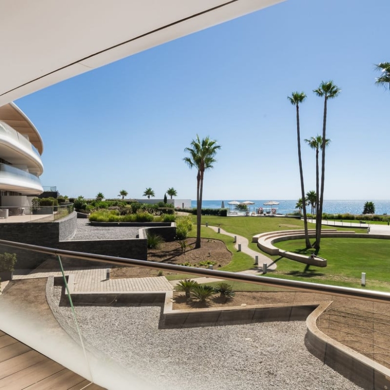 This stunning modern apartment in The Edge, Estepona’s premier beachfront development, offers a luxurious living experience with 92m2 of contemporary, open-plan space. Built in 2019, the apartment features 2 spacious bedrooms and 2 elegant bathrooms, finished by the prestigious Dornbracht brand, known for its high-end design and attention to detail. The bright and airy layout creates a sense of calm and sophistication, while floor-to-ceiling glass doors lead onto a generous 25m2 private terrace. Here, you can soak in spectacular sea views, making it the perfect setting for both relaxation and entertaining.