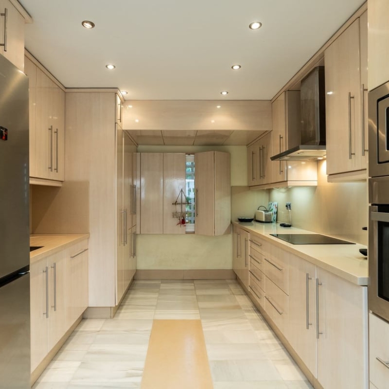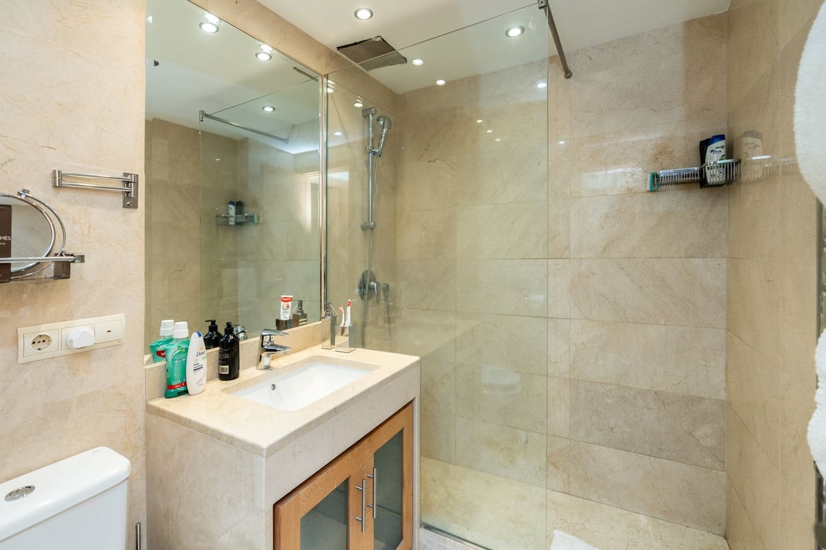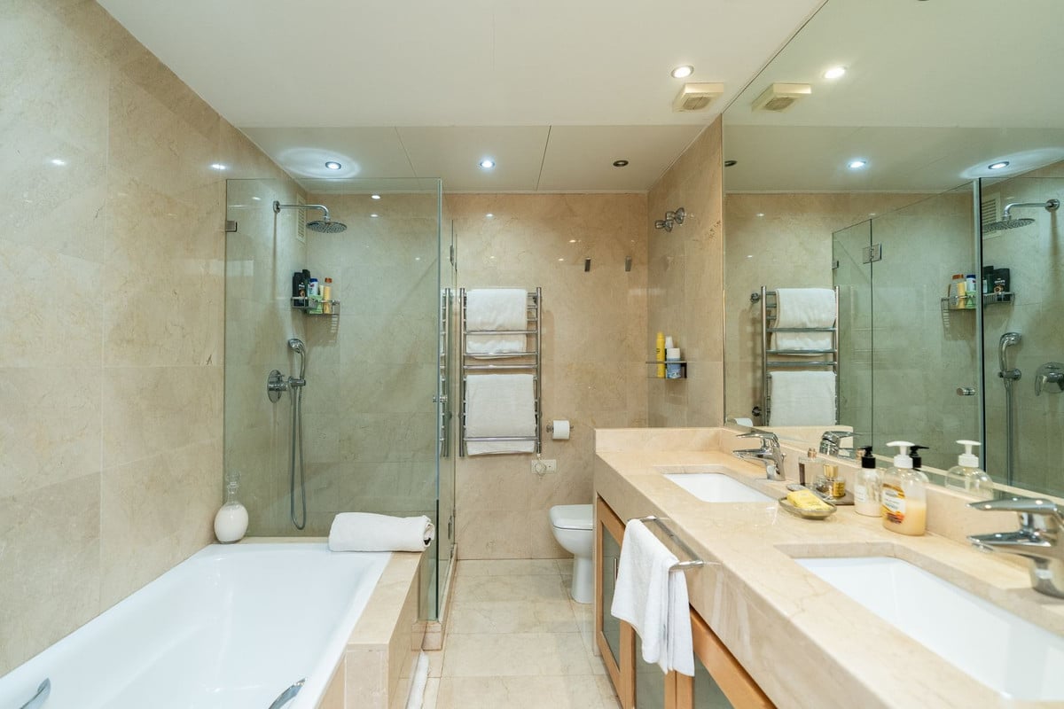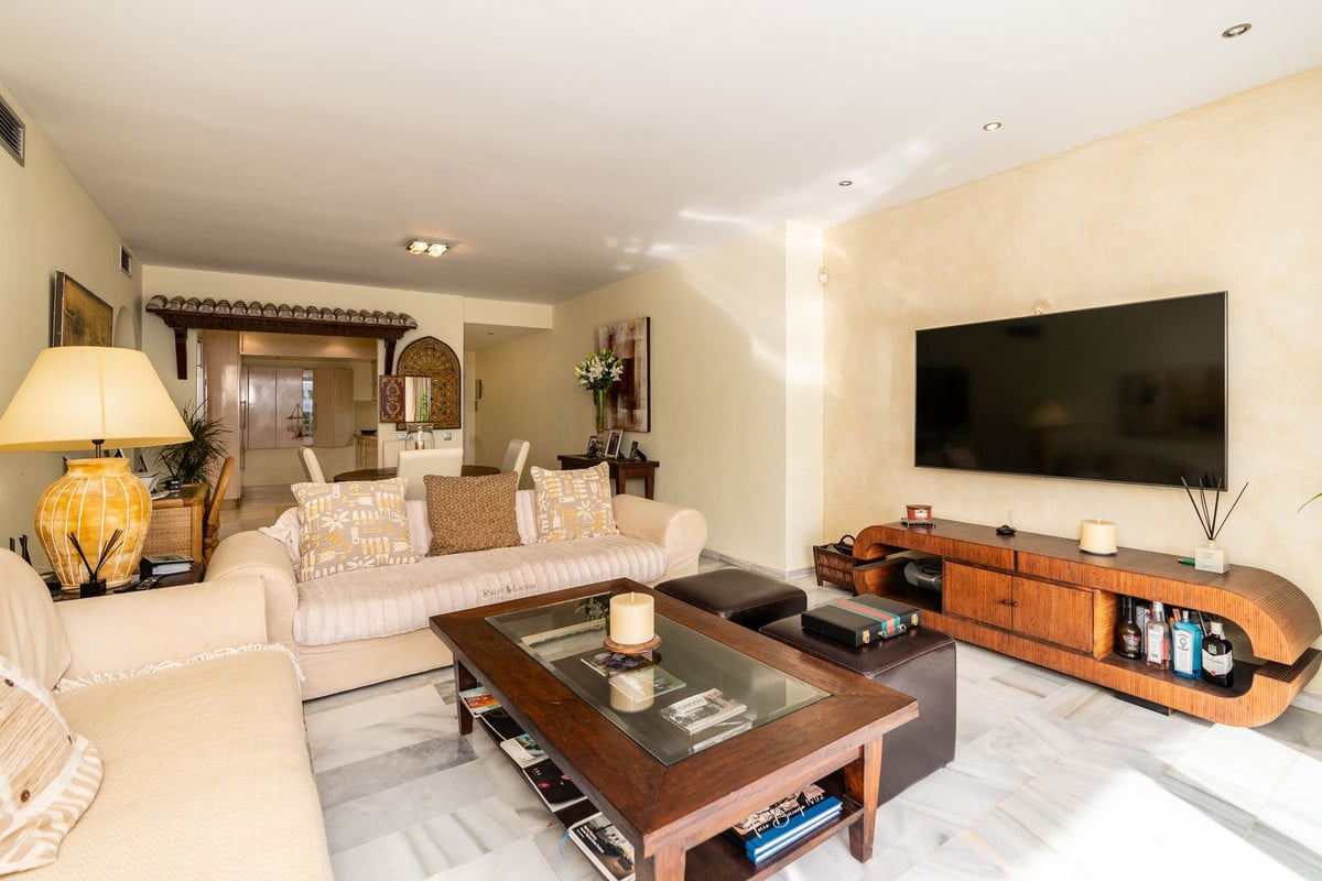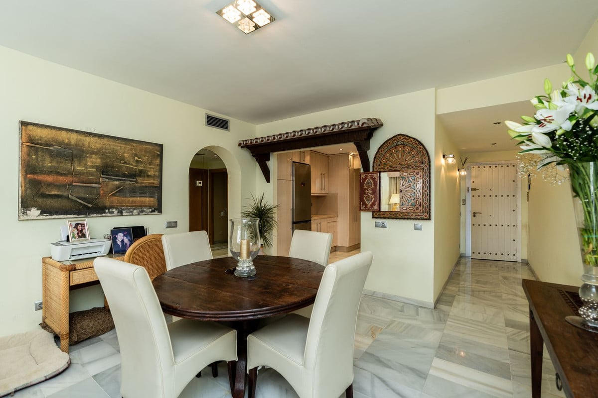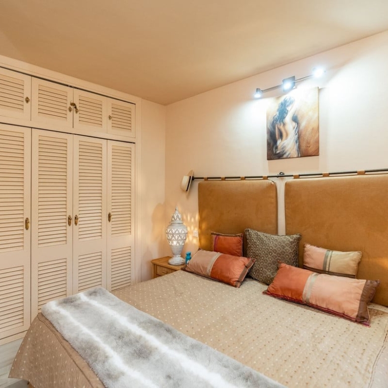 The apartment boasts breathtaking views of the sparkling Mediterranean Sea and the pristine pools within the lush, landscaped gardens. Step out onto your private terrace, an ideal space for outdoor dining, sunbathing, or simply enjoying the serene surroundings.