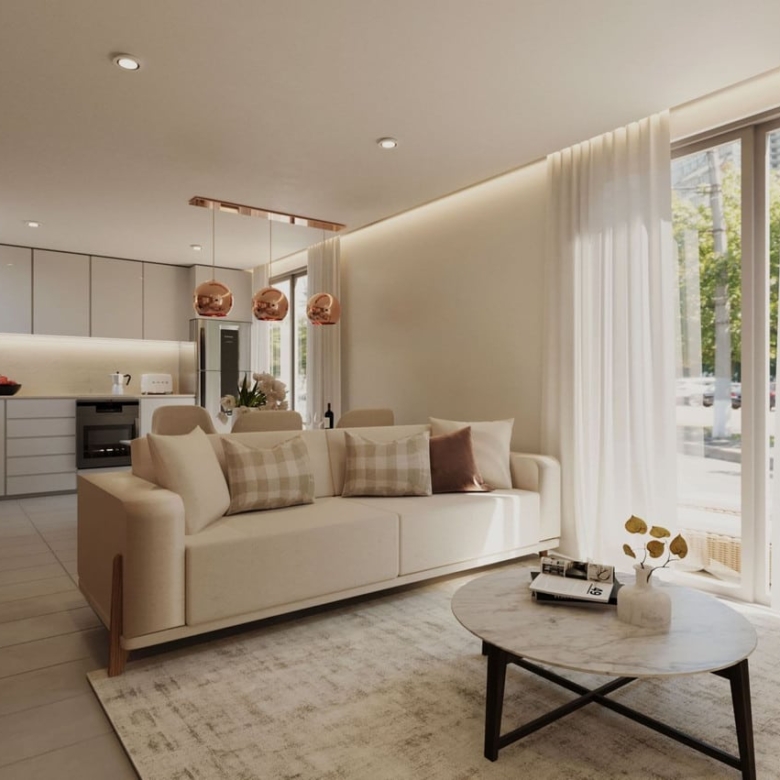 – Recessed spotlights in the ceiling of all windows and in the kitchen.