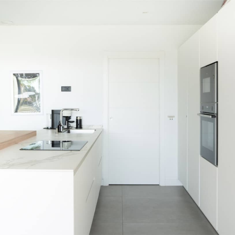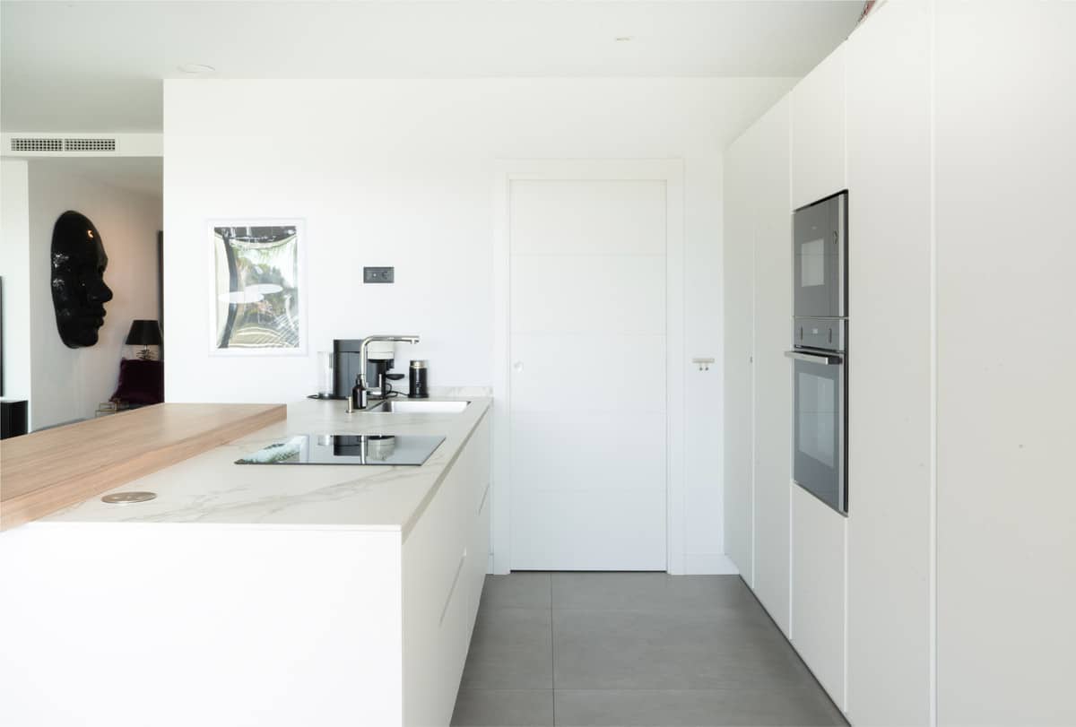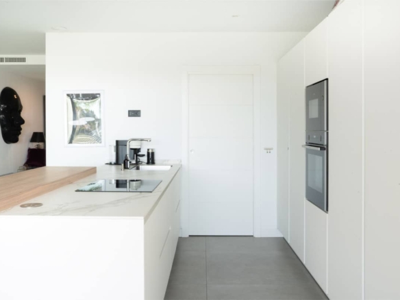 The apartment boasts two spacious bedrooms and two well-appointed bathrooms, spread across a generous 104m2 of living space. The property is meticulously maintained in excellent condition, ensuring a comfortable and stylish lifestyle. The fully furnished interior is complemented by a fully fitted kitchen, designed to cater to all culinary needs. Air conditioning and aerothermics technology provide an energy-efficient and comfortable environment throughout the year. Residents can indulge in a range of communal facilities, including a refreshing swimming pool, a well-equipped gym, and a relaxing sauna. The communal garden offers a serene escape, while the private terrace, spanning 18m2, provides breathtaking panoramic views of the sea and surrounding countryside. The apartment also includes a private garage and a storage room, ensuring ample space for all belongings.