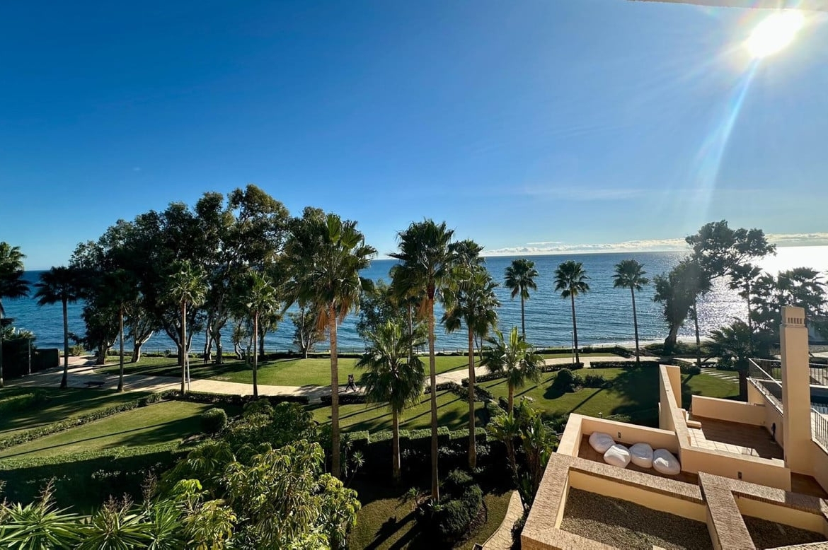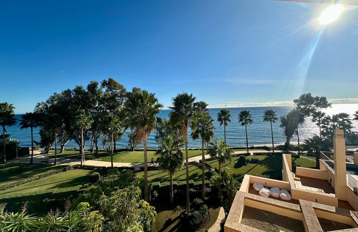 This exceptional 2 bedroom apartment is located in the prestigious Bahia de la Plata, Estepona. Nestled in a prime beachfront position, on the famous New Golden Mile, the property offers an unparalleled lifestyle with breathtaking sea views and convenient access to a range of amenities and the beach. Designed with both comfort and luxury in mind, the apartment is ideal for those seeking a serene coastal retreat or a modern family home.