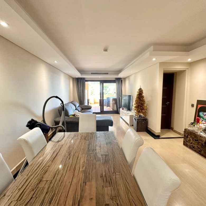 Residents will appreciate the array of communal facilities available, including a luxurious outdoor swimming pool, indoor swimming pool, sauna and jacuzzi as well as a paddel tennis court, landscaped gardens, and a fully equipped gym. The property is situated within a secure gated community, complete with surveillance cameras and a security entrance for peace of mind. Additional features such as fitted wardrobes, a guest room, guest toilet, and a storage room further enhance the practicality of this home. The apartment also includes a private garage, ensuring convenience and security for vehicle storage.