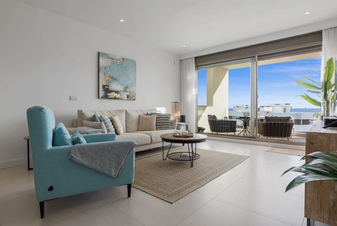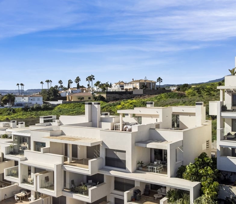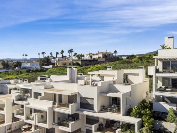 An incredible Opportunity! Spacious duplex penthouse with panoramic sea and mountain views in the modern Estepona town suburb of Las Mesas. This is an amazing location, a peaceful, modern neighbourhood just above Estepona Marina and an easy walk or short drive to Estepona Old Town, the beach and new paseo area.